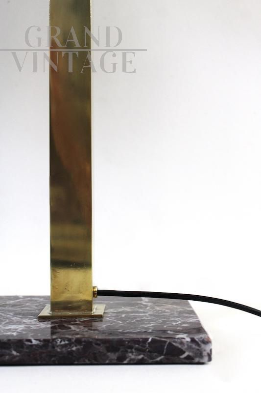 Coppia di lampade da tavolo abat-jour design modernariato molto eleganti con struttura in ottone, base in marmo e paralume cilindrico in tessuto nero. Provenienza anni '70.