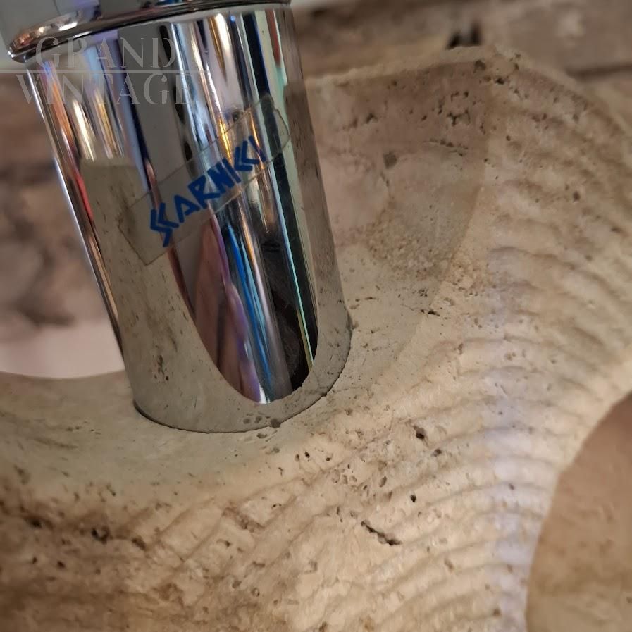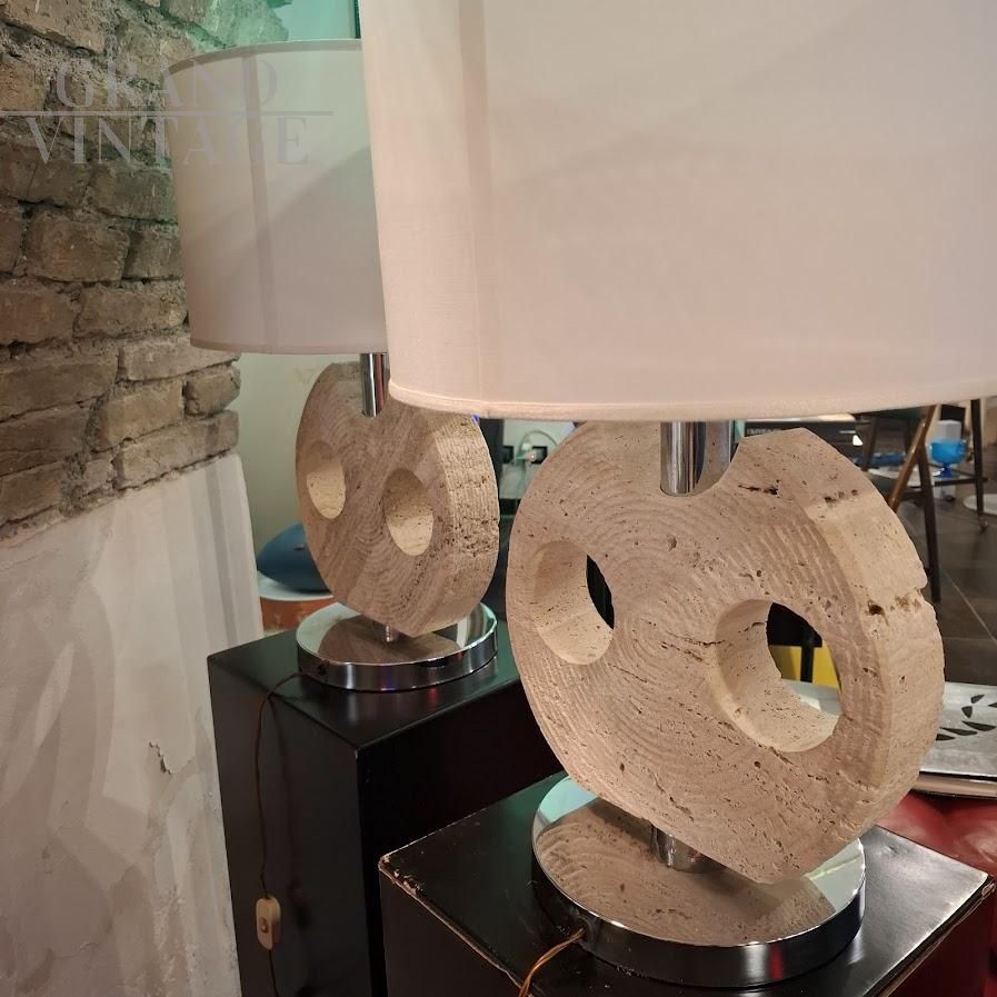 Coppia di lampade in marmo travertino scolpito da Emanuele Scarnicci