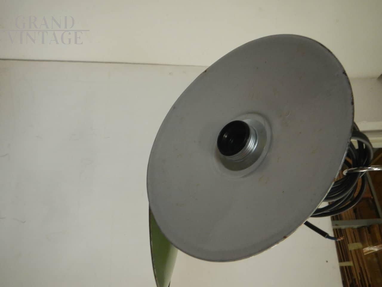 Coppia di lampade industriali a piattino in metallo verde, anni '40