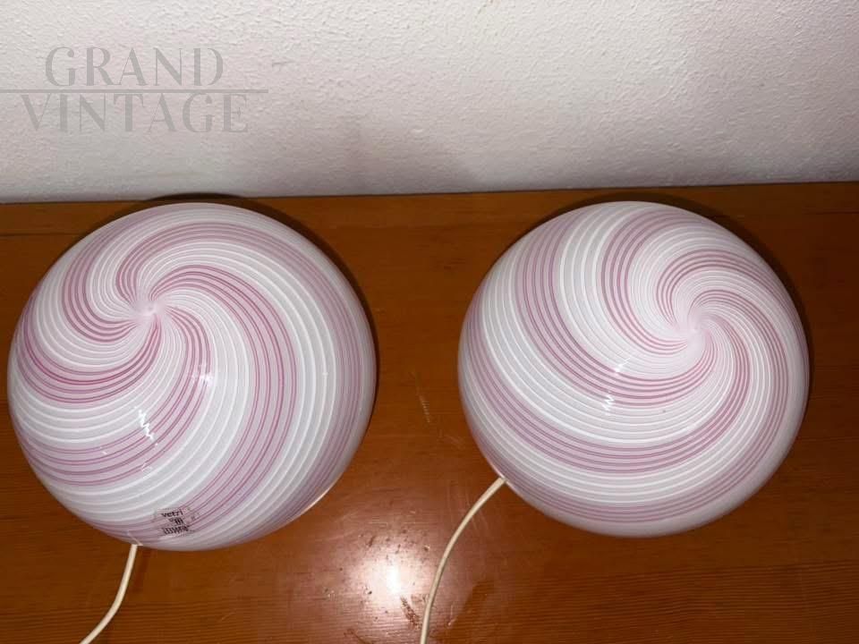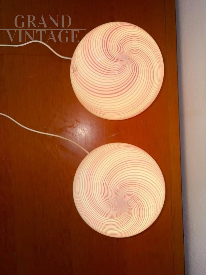 Coppia di lampade Swirl in vetro di Murano rosa