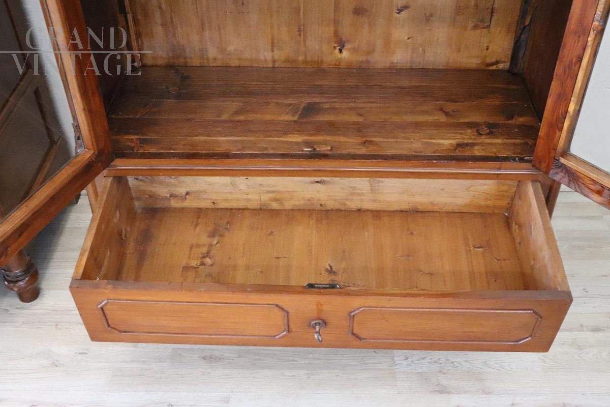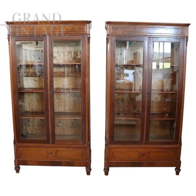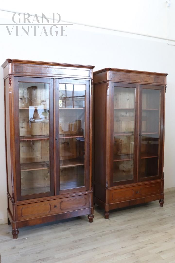 Siamo entusiasti di presentare questa fantastica coppia di antiche librerie italiane risalenti agli ultimi decenni del XIX secolo. Una splendida coppia di librerie dal fascino antico e senza tempo! Realizzate in noce in una bella tonalità calda, sono facilmente abbinabili a qualsiasi colore di arredamento. Caratterizzate da una struttura molto lineare, senza eccessivi ornamenti, una piccola decorazione intagliata sul frontale ne ammorbidisce la linearità. Presentano due ante in vetro e un pratico cassetto sul fondo per riporre ulteriori oggetti. All'interno, tre ripiani per un ampio spazio per i libri. Pur ritenendole perfette per arredare un ufficio, queste librerie possono essere ammirate in qualsiasi ambiente della casa. Restauro conservativo effettuato. Prezzo trattabile.