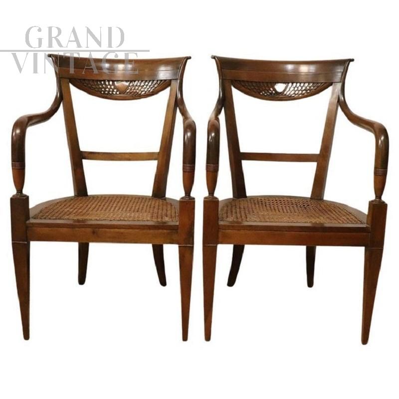 Coppia di poltrone antiche di epoca Direttorio, XVIII secolo
