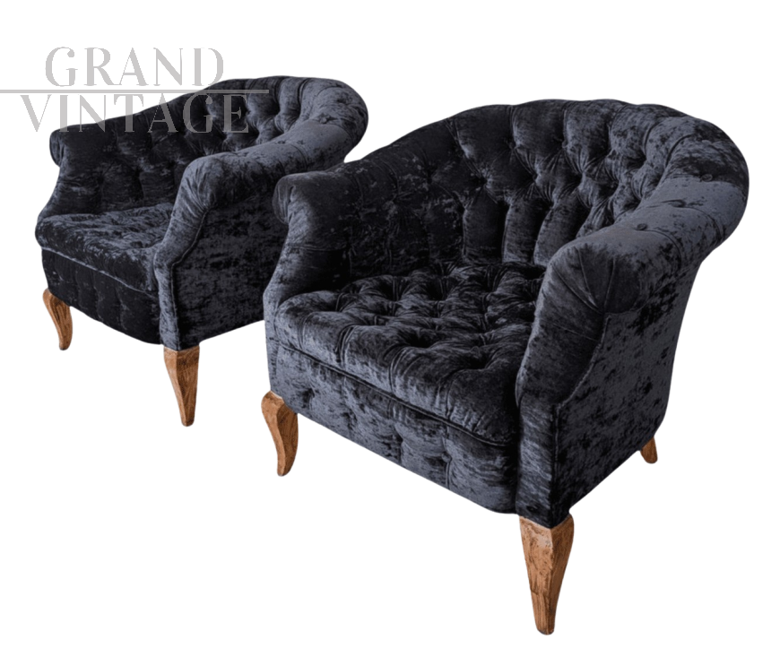 Coppia di poltrone Chesterfield in velluto nero