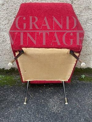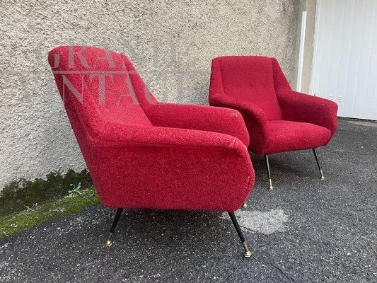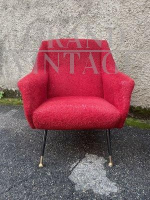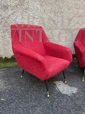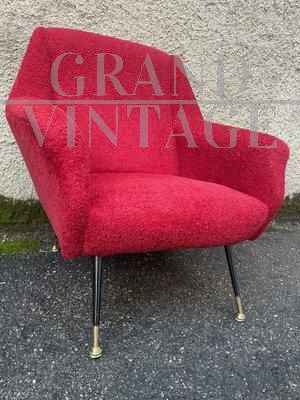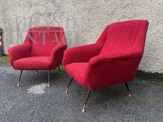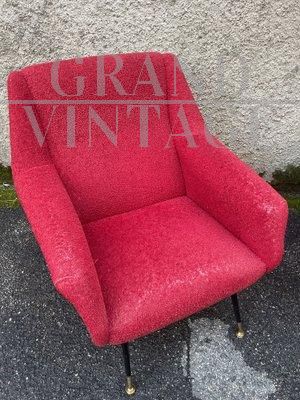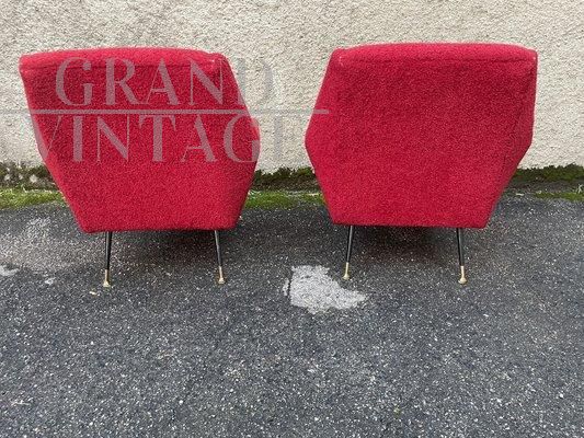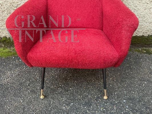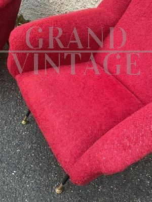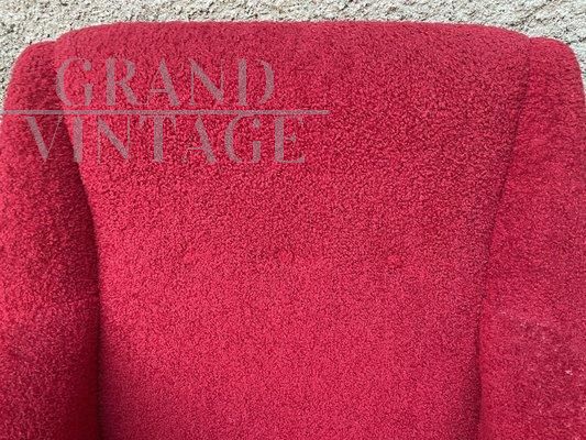 Coppia di poltrone design in stile Gigi Radice in lana bouclé rossa, anni '60
