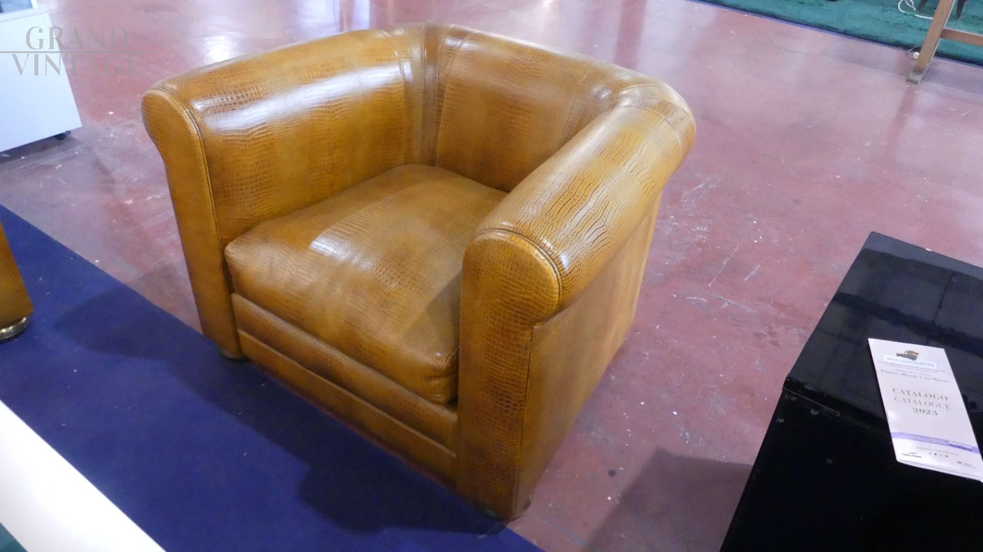 Coppia di poltrone di Tommaso Barbi in pelle stampata a pitone