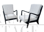 Coppia di poltrone modello 516 prodotte da Cassina negli anni ’50 e disegnate da Giò Ponti. La struttura è in legno di noce ebanizzato a gomma lacca. Le poltrone sono conservate e non presentano restauri. I cuscini (schiuma e fodere) sono nuovissimi. Le fodere sono in tessuto "bouclé" di Dedar.