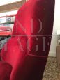Coppia di poltrone artigianali vintage dei primi del '900 in stile art nouveau rivestite in velluto di seta rossa bordeaux con dettagli a frange, restaurate completamente anche di struttura. Il velluto presenta segni di usura in quanto molto delicato.
