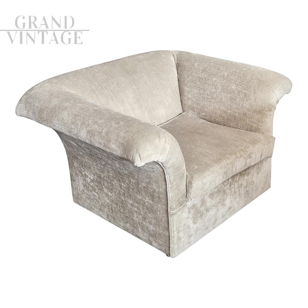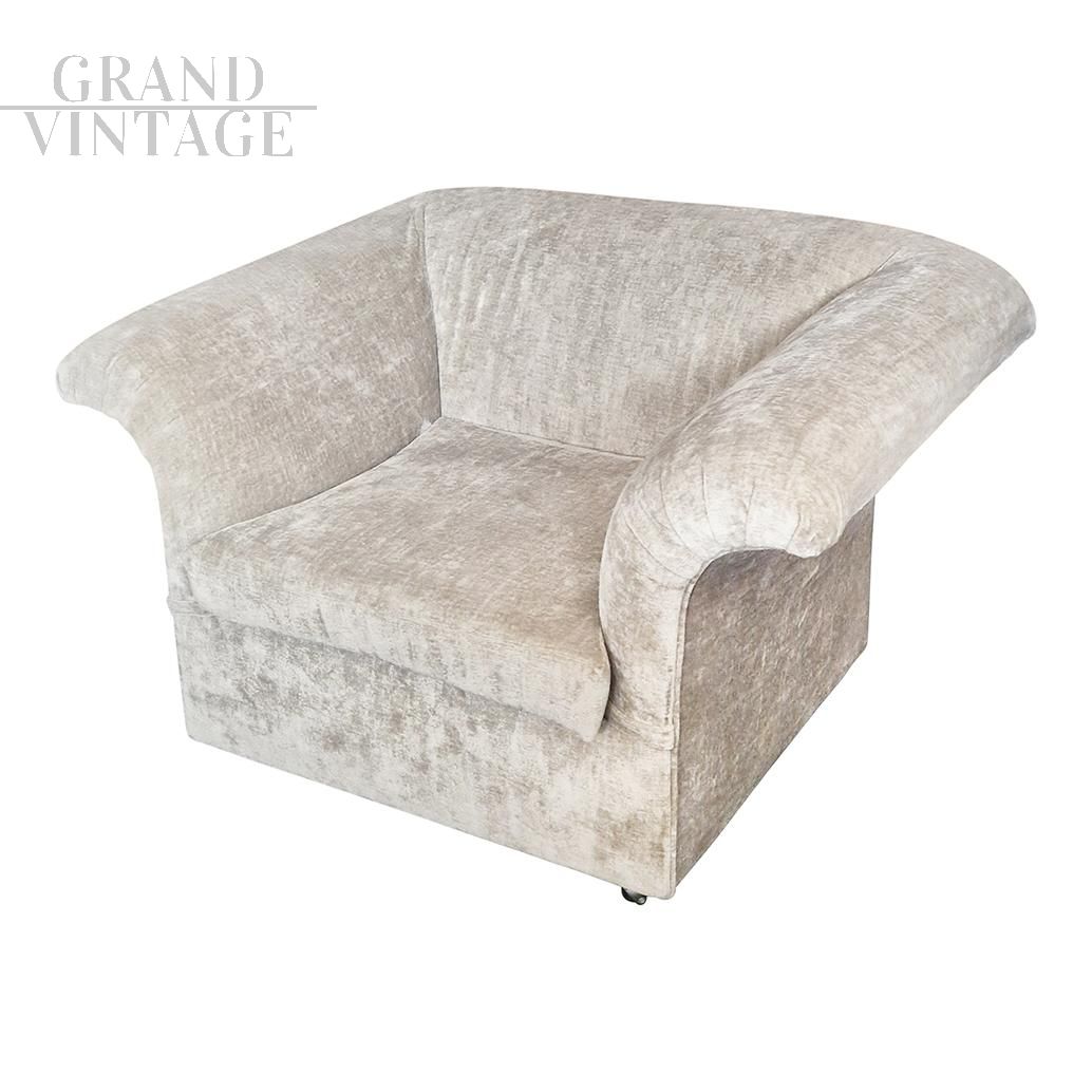 Coppia di poltrone vintage in velluto beige - V-0088