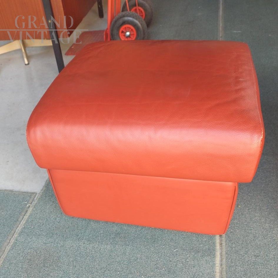 Coppia di pouf design di Matteo Grassi in pelle color arancione scuro, completi di etichetta originale e codice registrazione ad attestarne l'originalità.