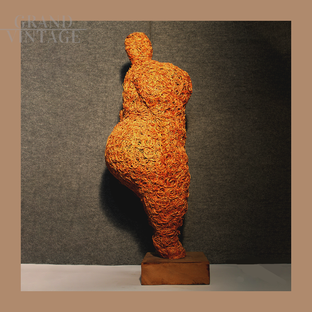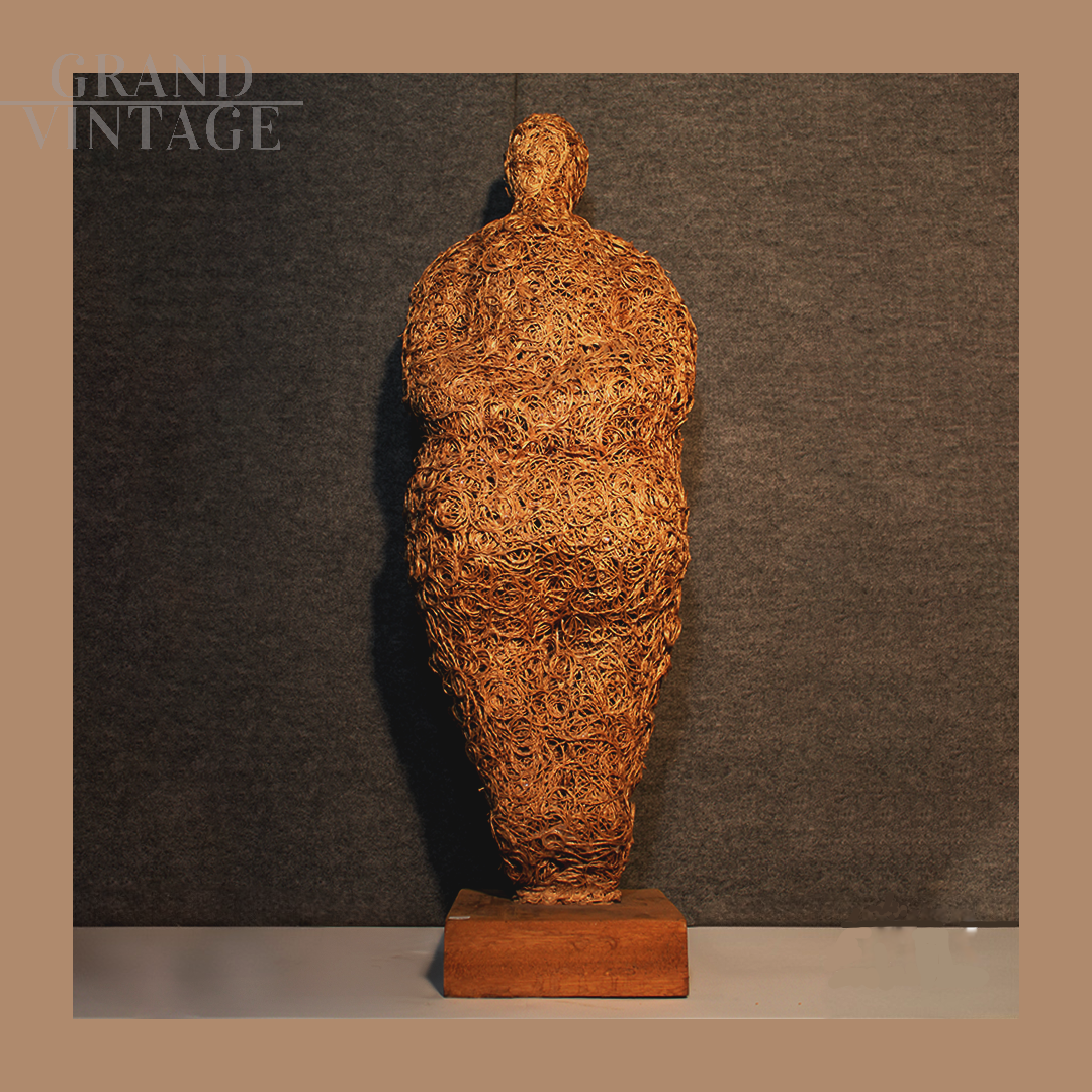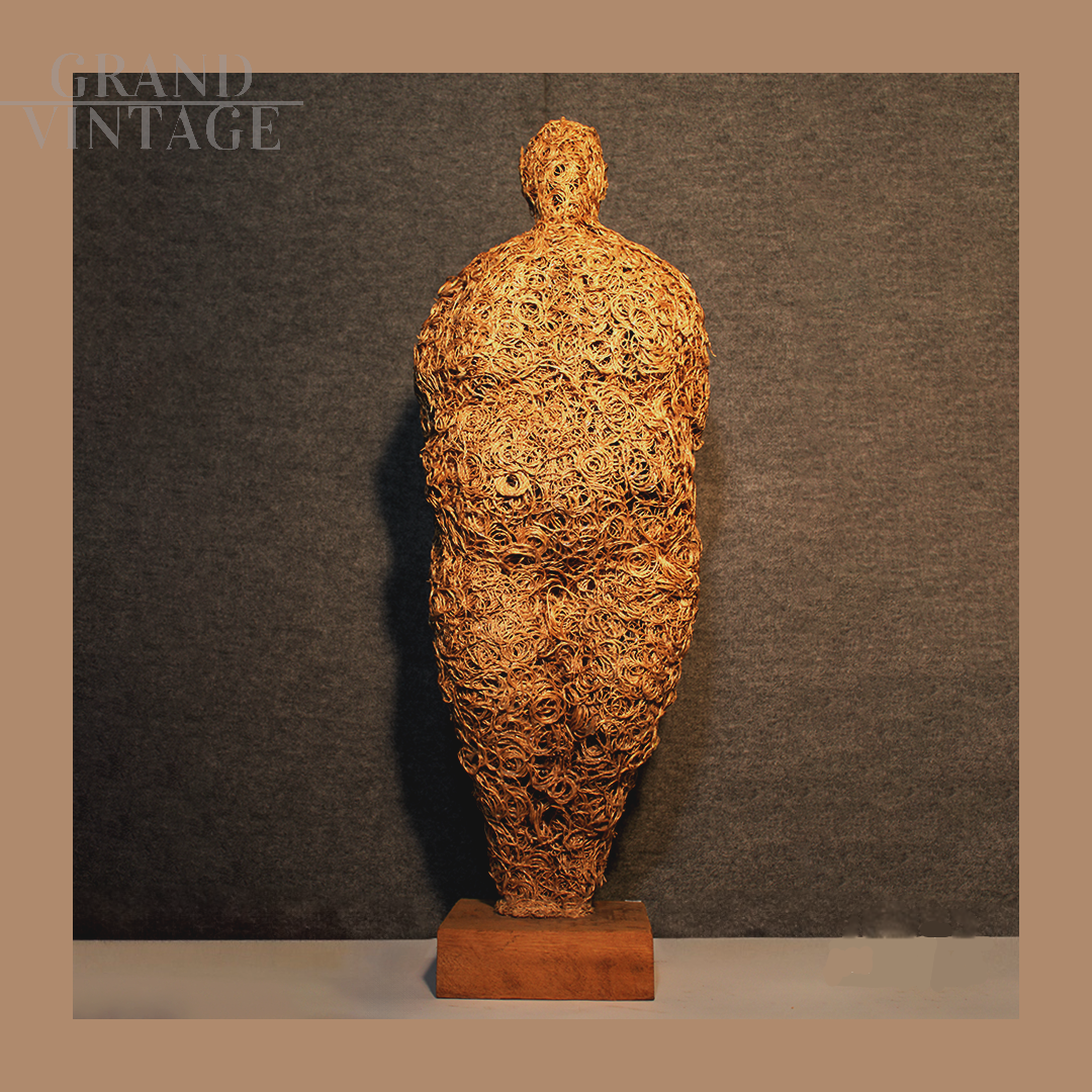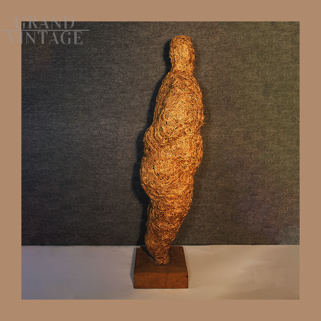 Questa coppia di sculture contemporanee rappresenta figure umane stilizzate, realizzate con una tecnica intrecciata. Le opere, poste su basi in legno, catturano il movimento e il volume in una forma astratta ed evocativa. Ideali per spazi moderni o collezioni che celebrano il dialogo tra arte e natura.