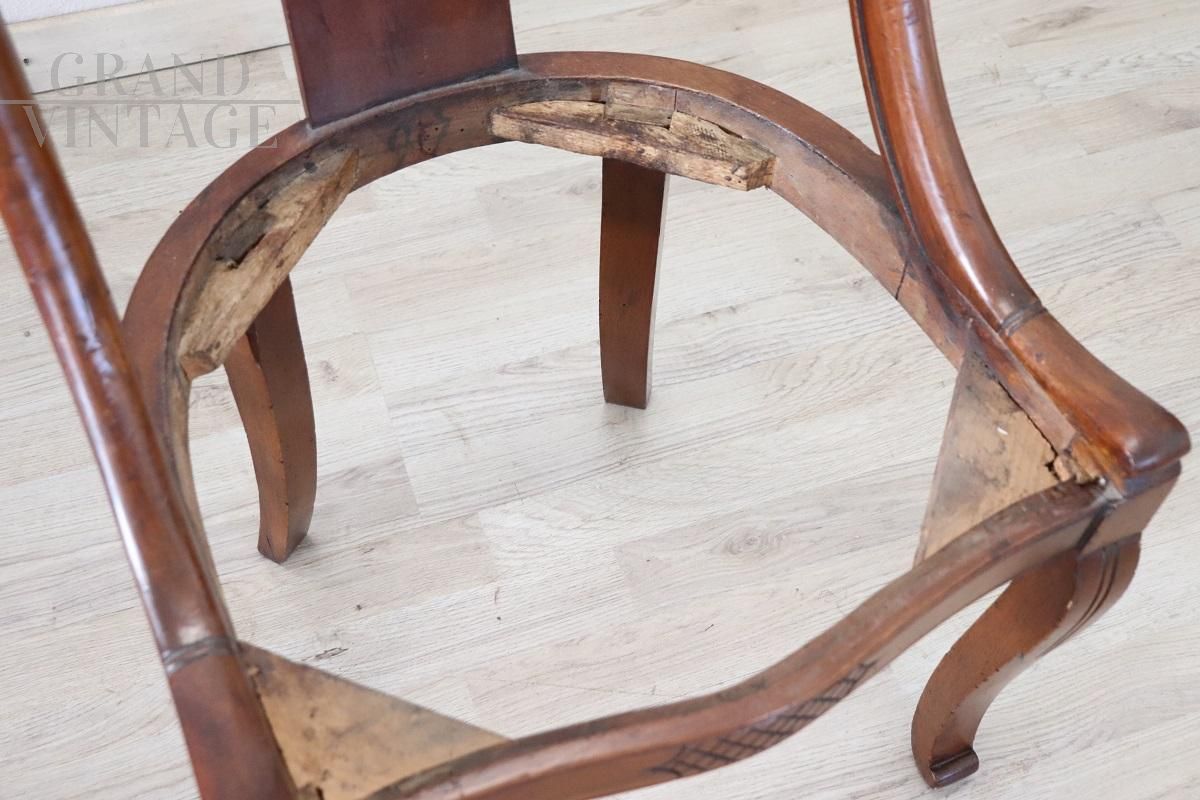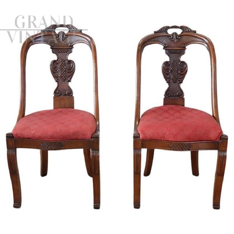 Coppia di sedie antiche a gondola in noce, XIX secolo