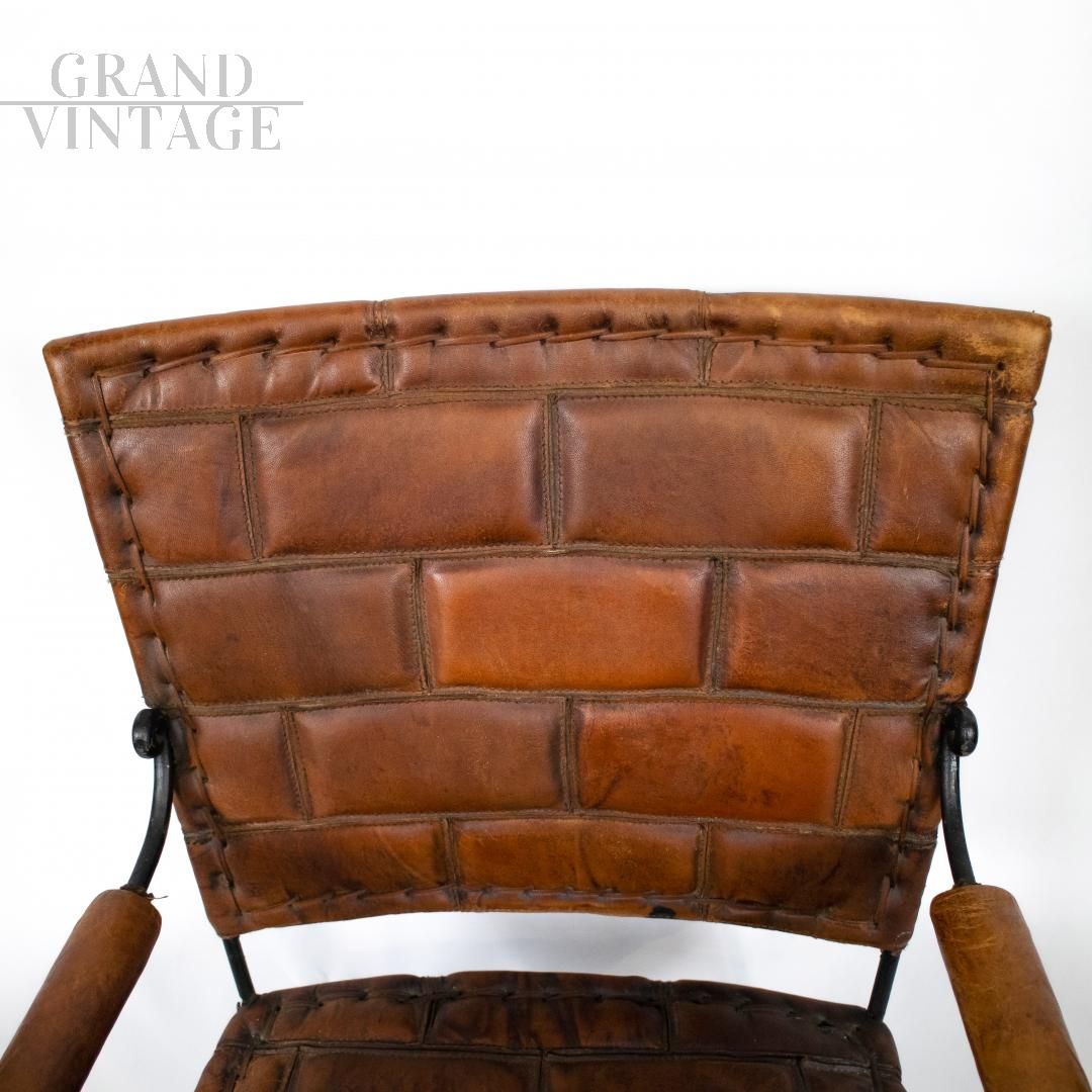 Coppia di sedie con struttura in ferro e seduta e schienale in cuoio lavorato a mano. Il mix perfetto di ferro e cuoio rende questa sedia unica e originale.