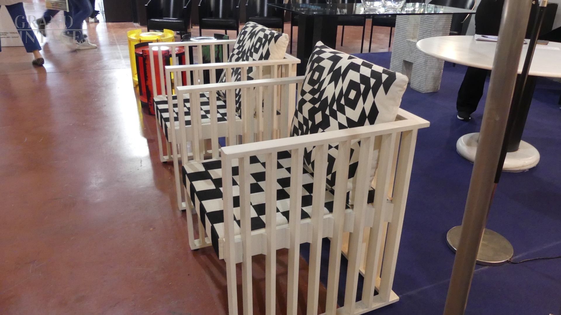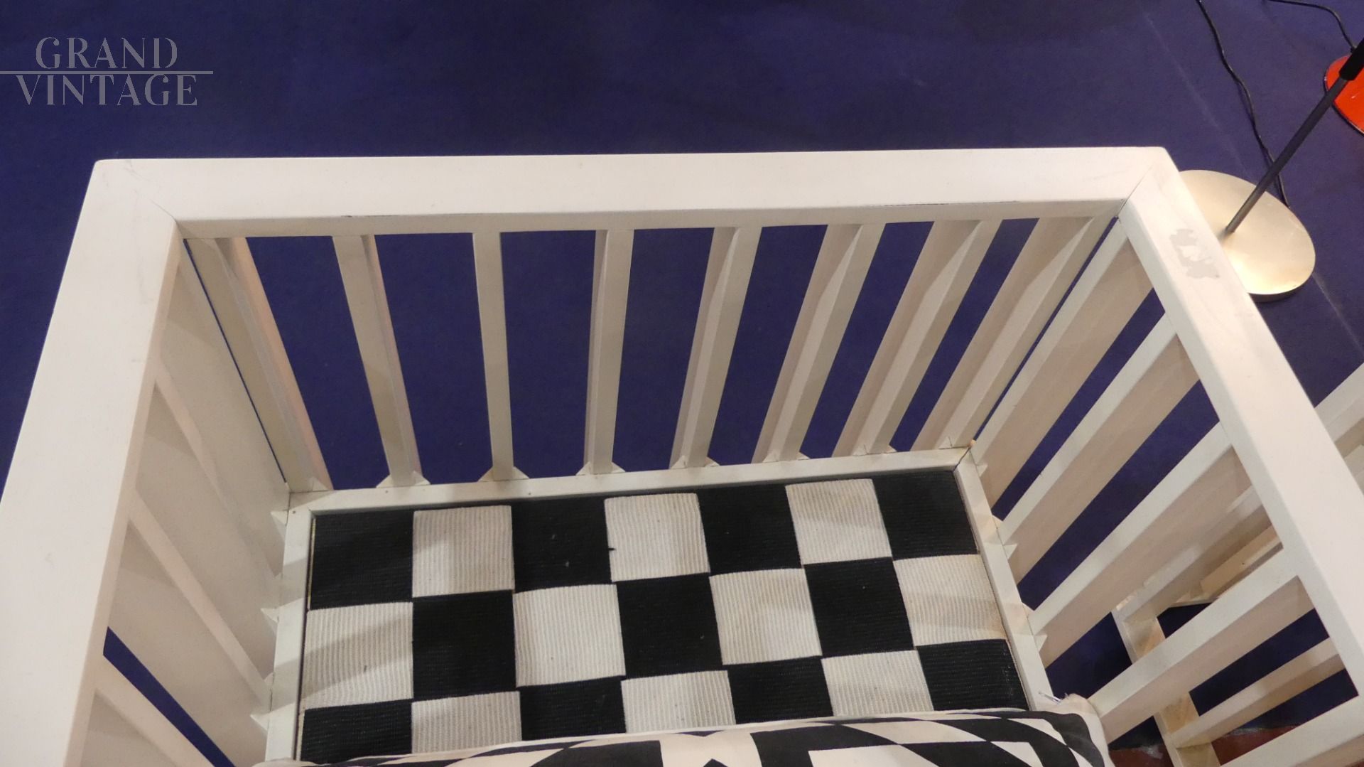 Questa sedia è stata disegnata dai due architetti per l'ingresso del Purkersdorf Sanatorium alla periferia di Vienna, un elegante centro di cure in stile spa per le classi benestanti.