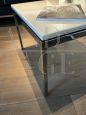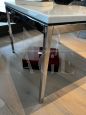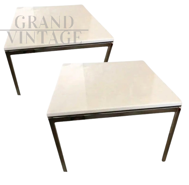 Coppia di magnifici tavolini quadrati design di Florence Knoll con struttura in acciaio cromato e piano in lussuoso marmo bianco di forte spessore, completi di marchio sotto il piano, realizzati nel 2012.