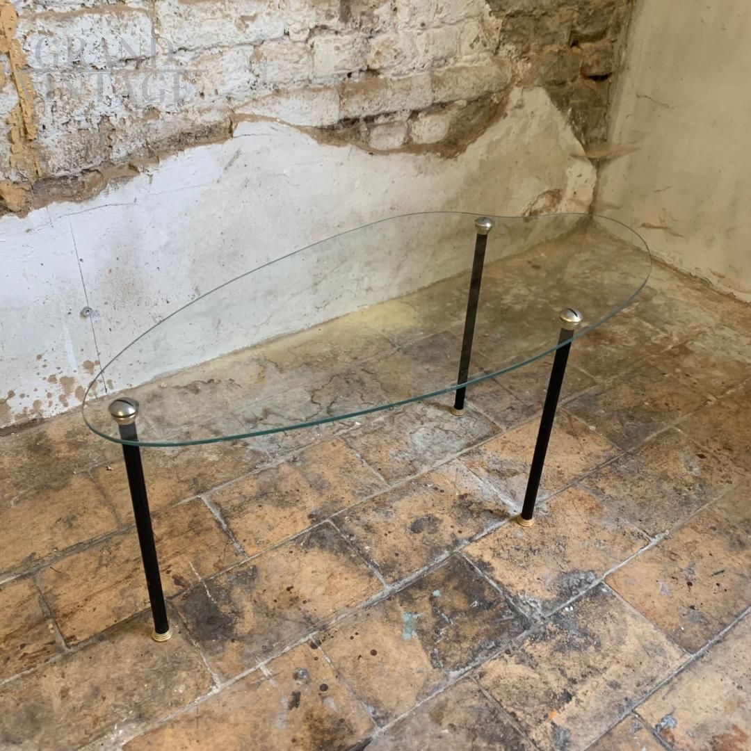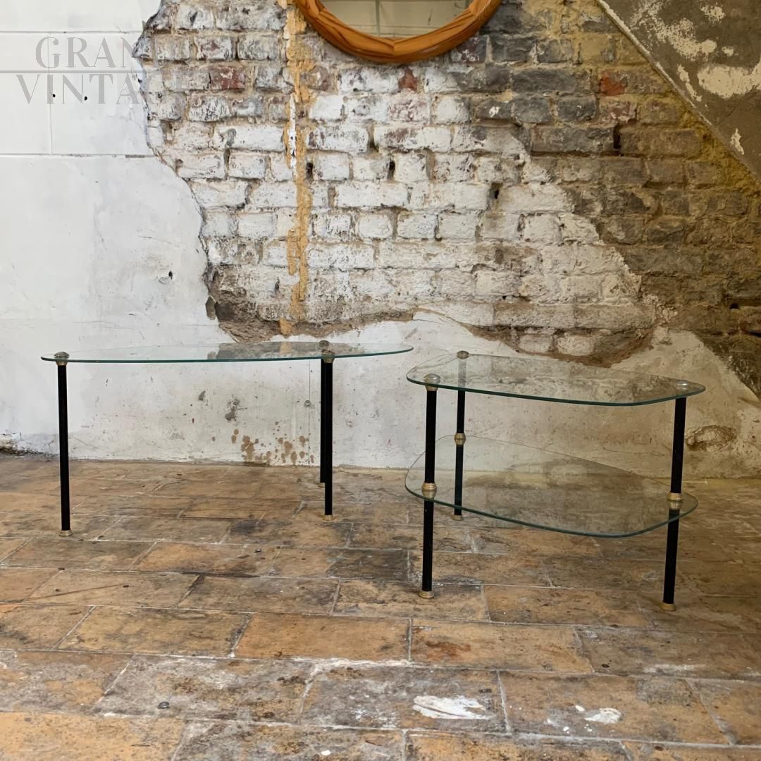 Coppia di tavolini in vetro e metallo in stile Edoardo Paoli, anni '50