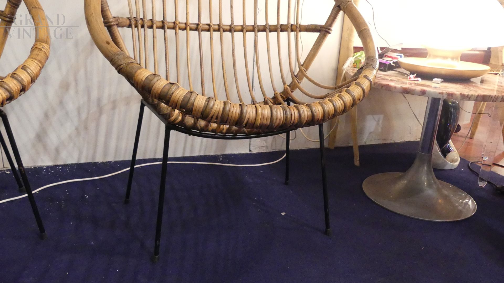 Coppia di poltroncine vintage in bamboo e rattan, anni '60, di manifttura italiana.