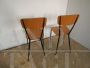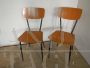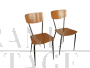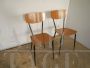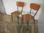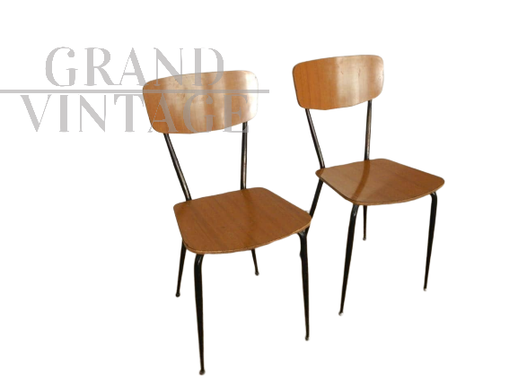 Coppia di sedie in formica marrone e gambe in ferro laccato nero, anni '50.