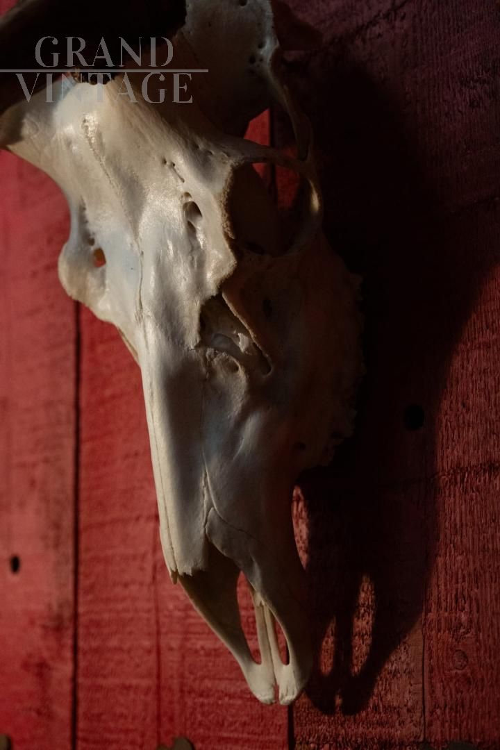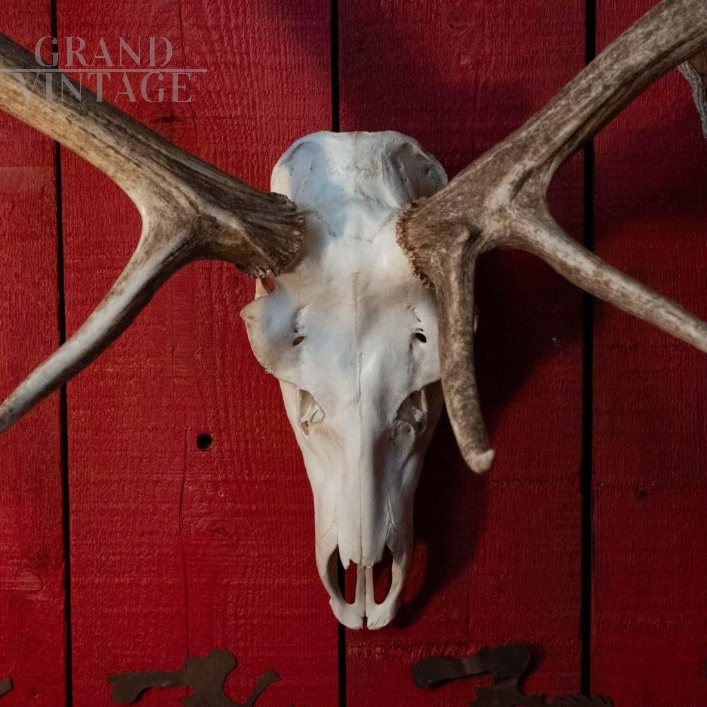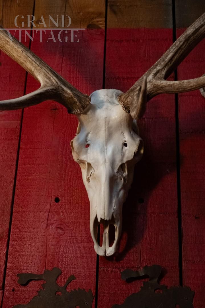 Trofeo in legno con corna di cervo, un pezzo di arredamento rustico che porta l’eleganza della natura all’interno della vostra casa.