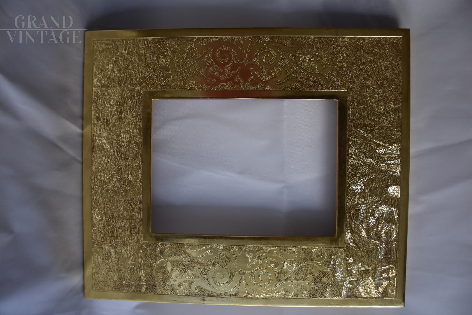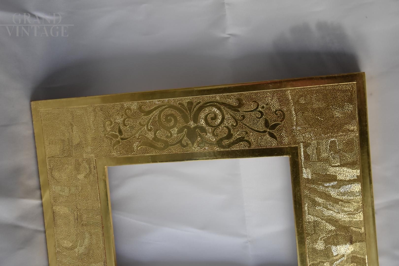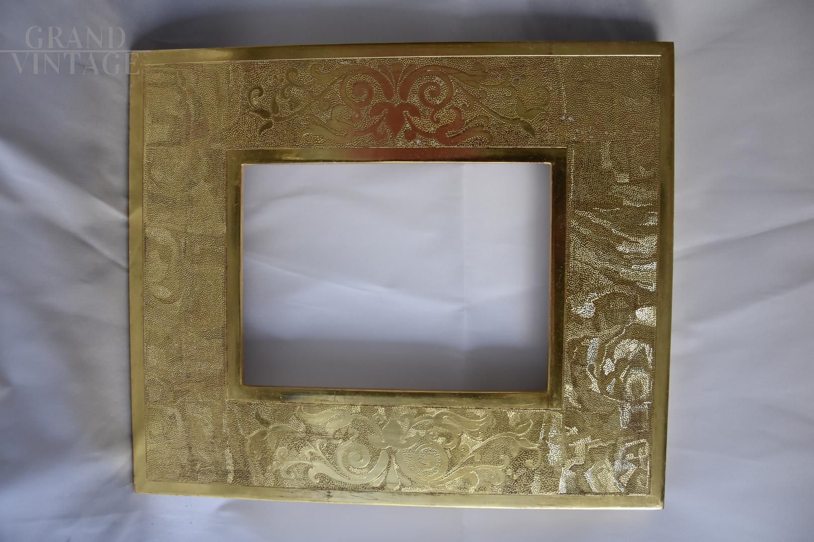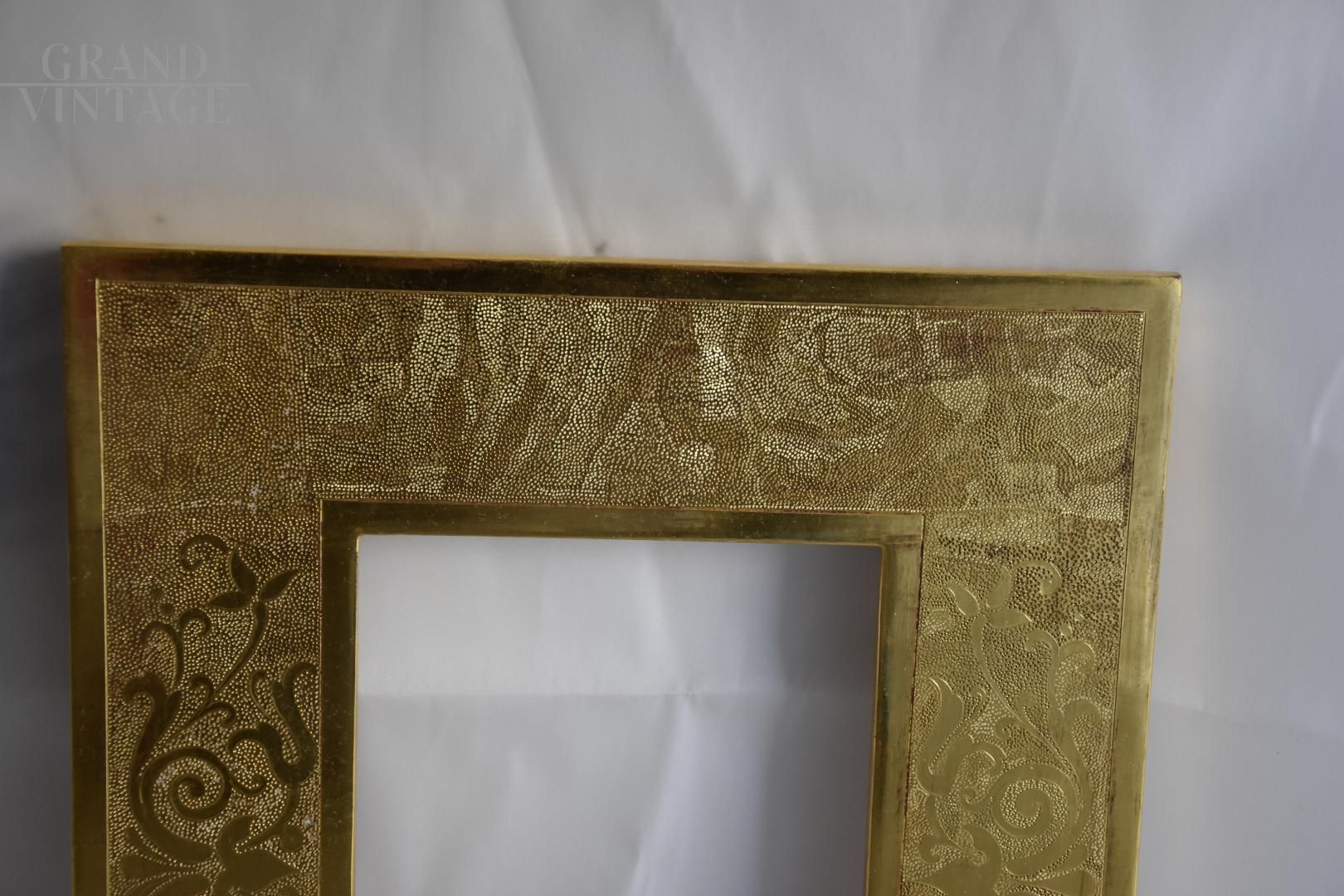 Pregevole cornice dorata realizzata dall'artista Andrea Busnelli in legno e oro 24 K, datata 2015. Un'opera artigianale di ottima fattura, ideale per contenere specchi, ritratti moderni o opere d'arte, decorata con motivi geometrici e a spirale, frutto dell’abilità decorativa dell’artista. Dipinto munito di certificazione d’originalità firmata dall’artista.