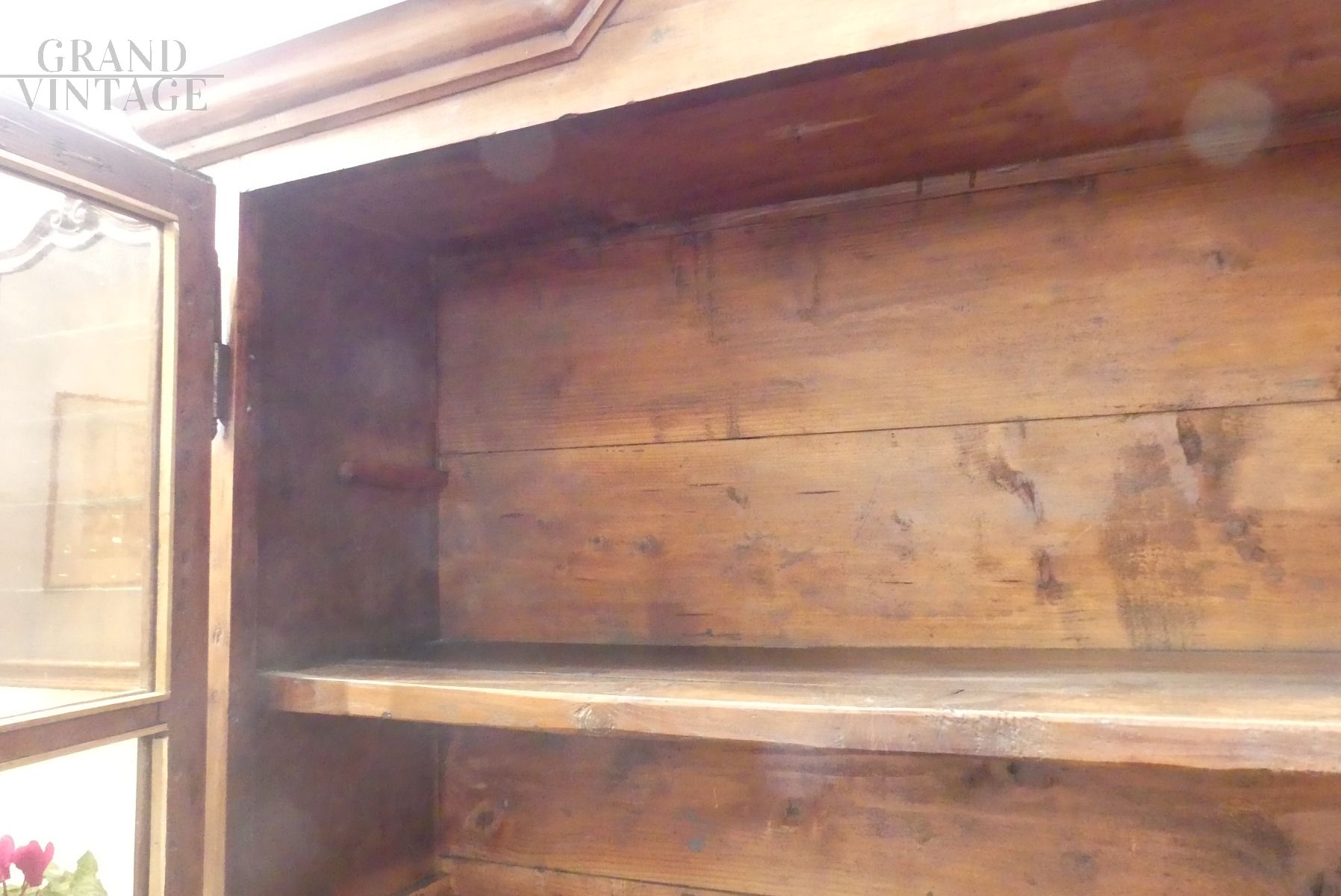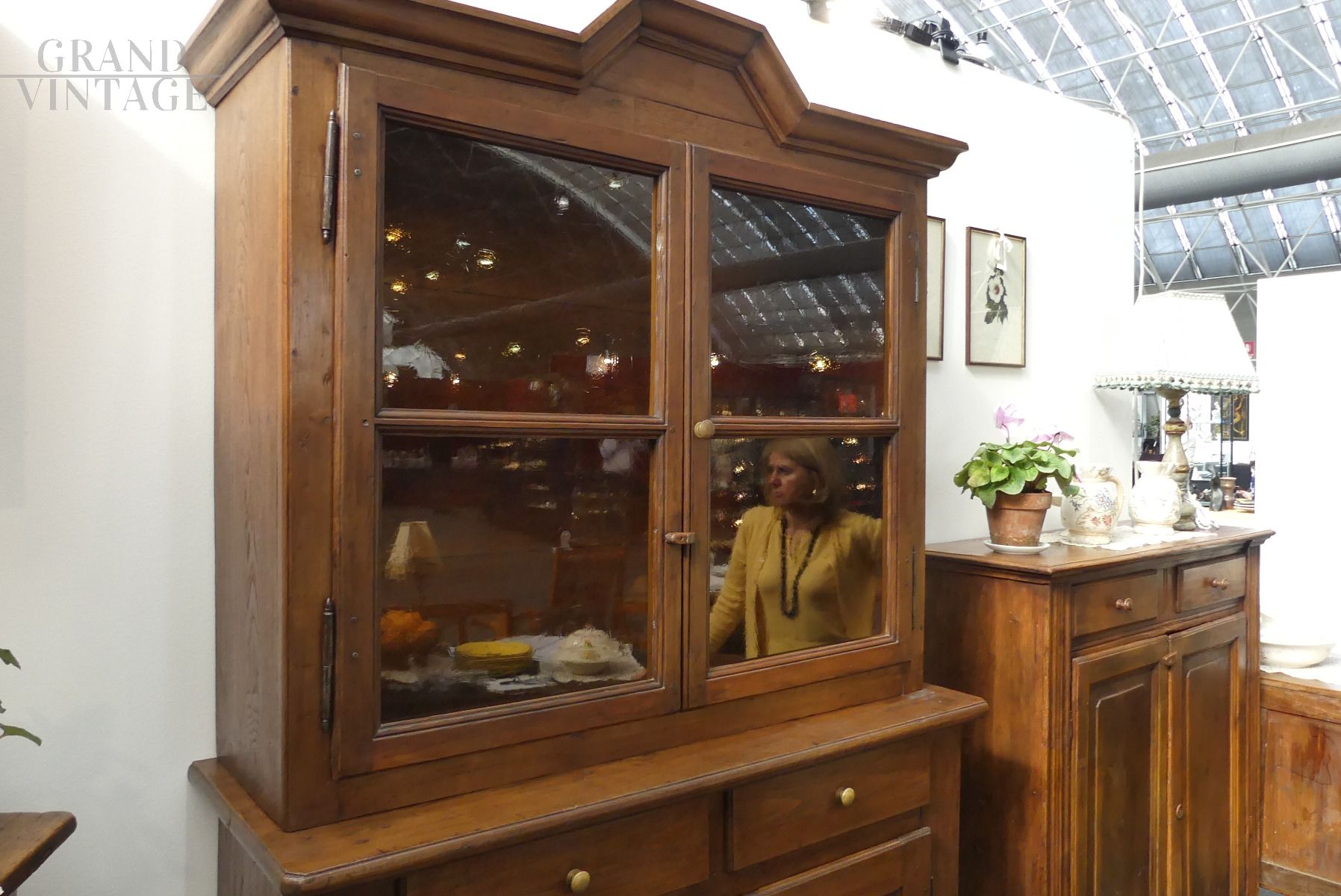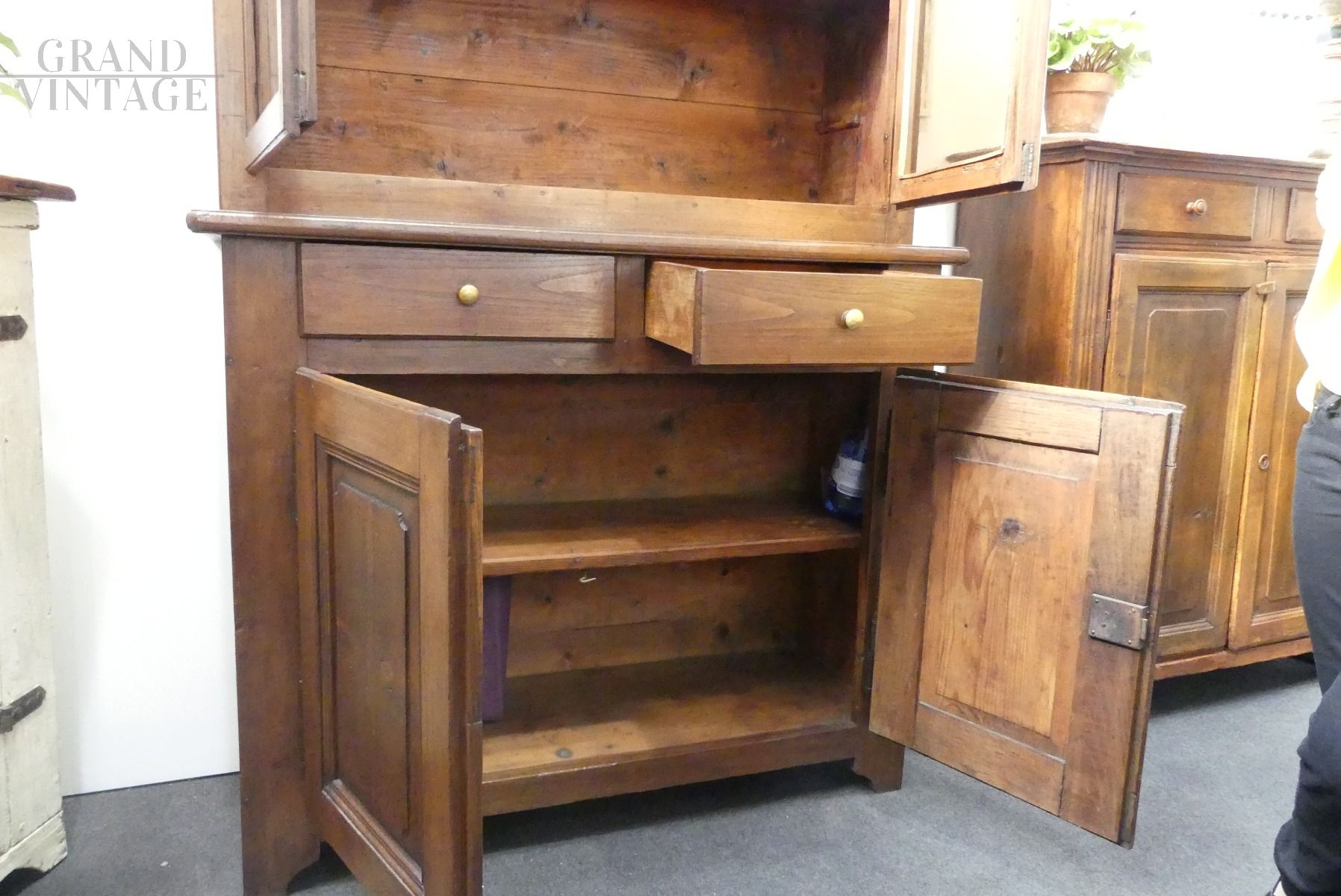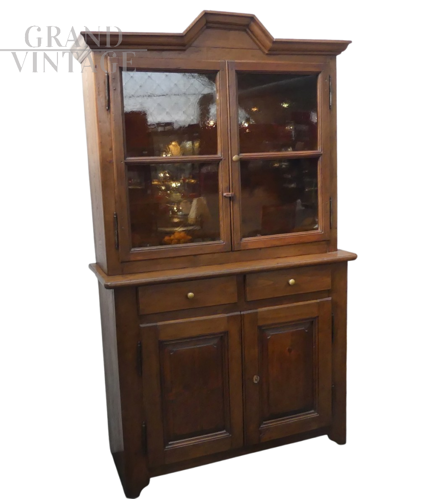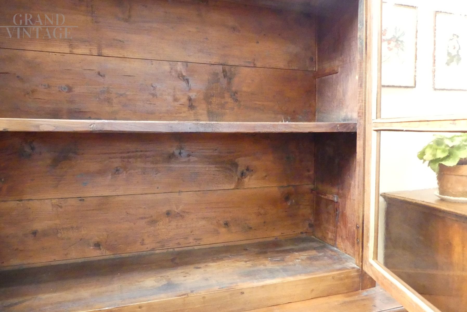 Credenza antica a due corpi con ante a vetro, Italia 1800