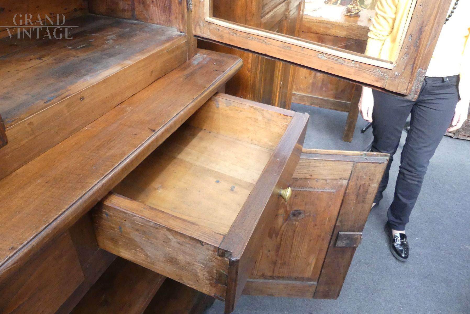 Credenza a due corpi in legno di castagno, della metà del 1800, di provenienza Lombarda.