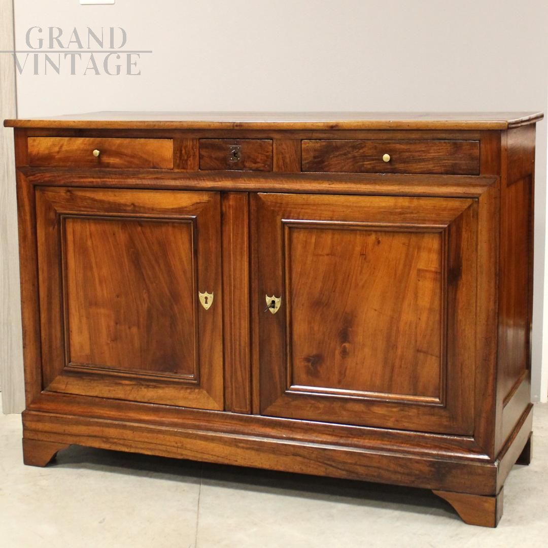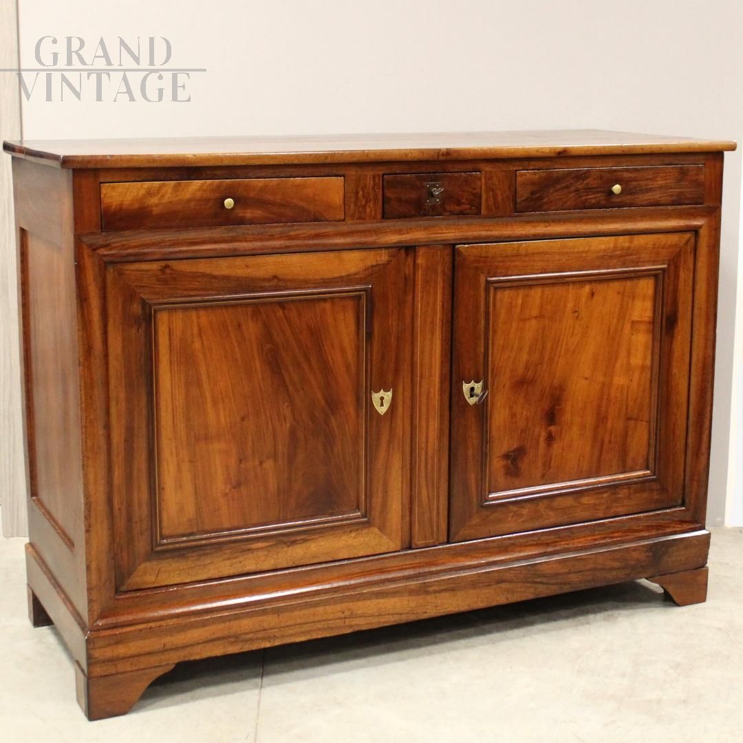 Credenza antica Luigi Filippo a due ante in noce, Italia '800