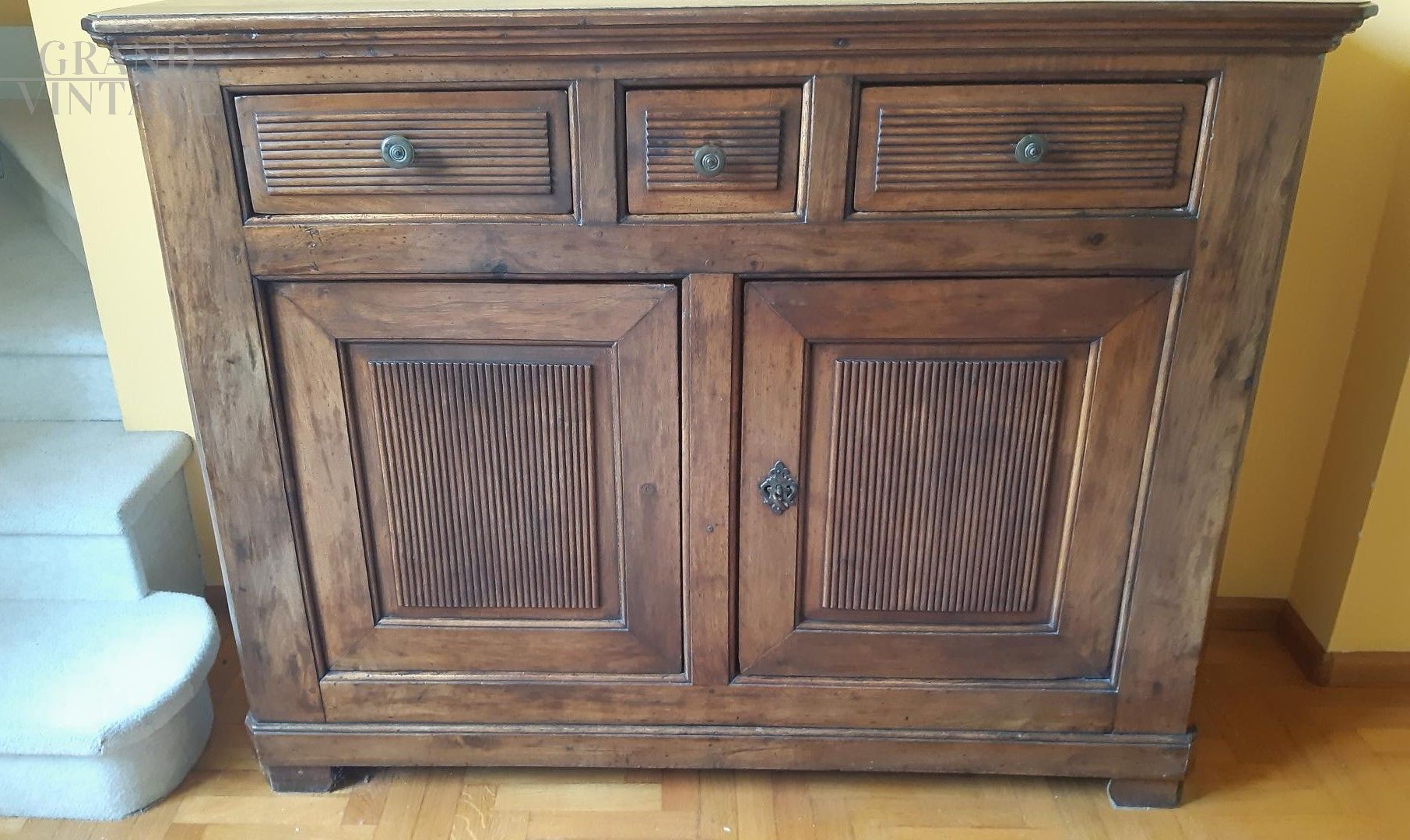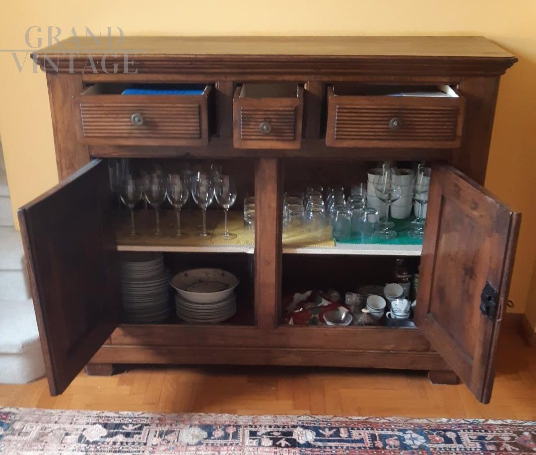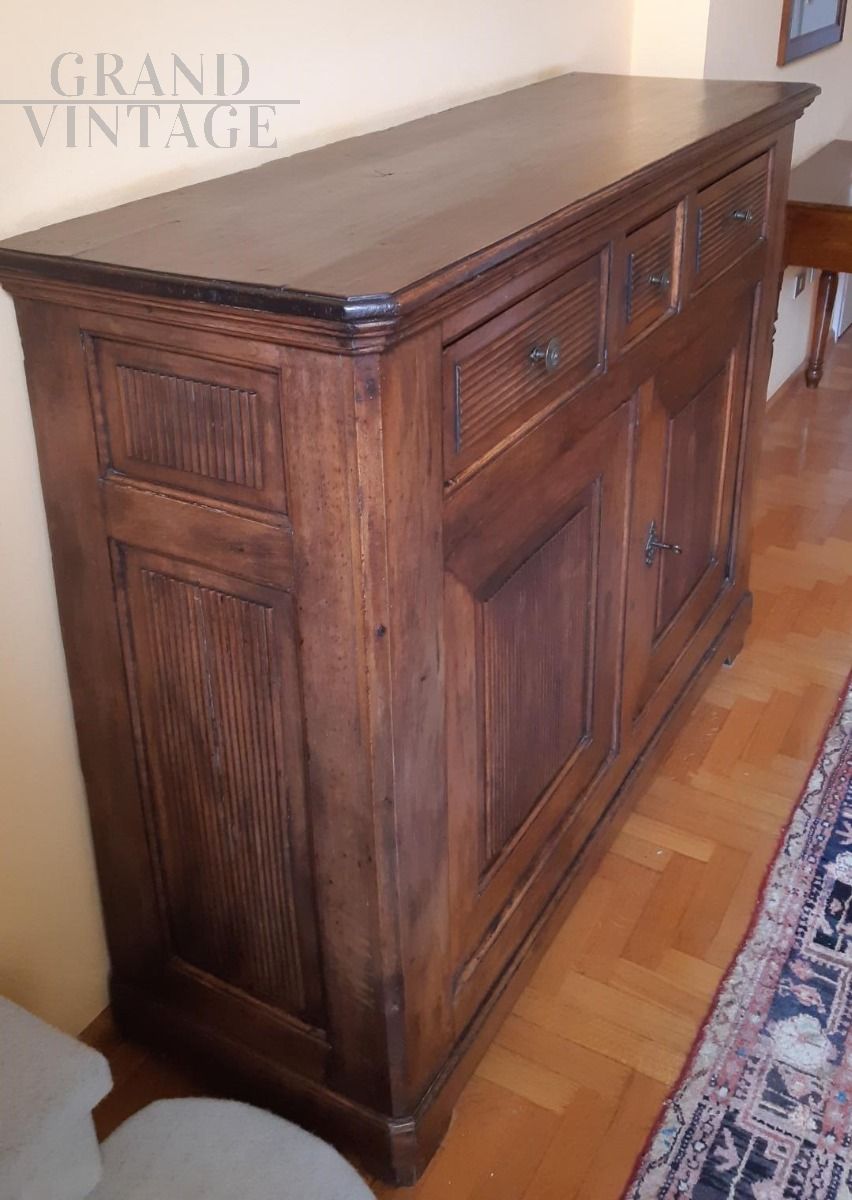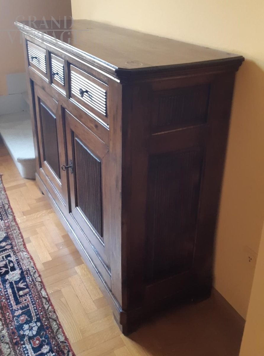Credenza buffet antica di fine '800 in noce con scanalature