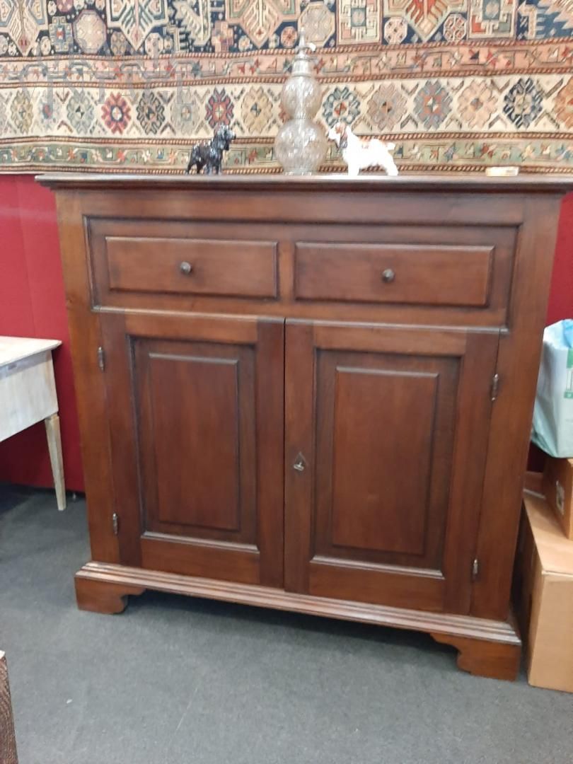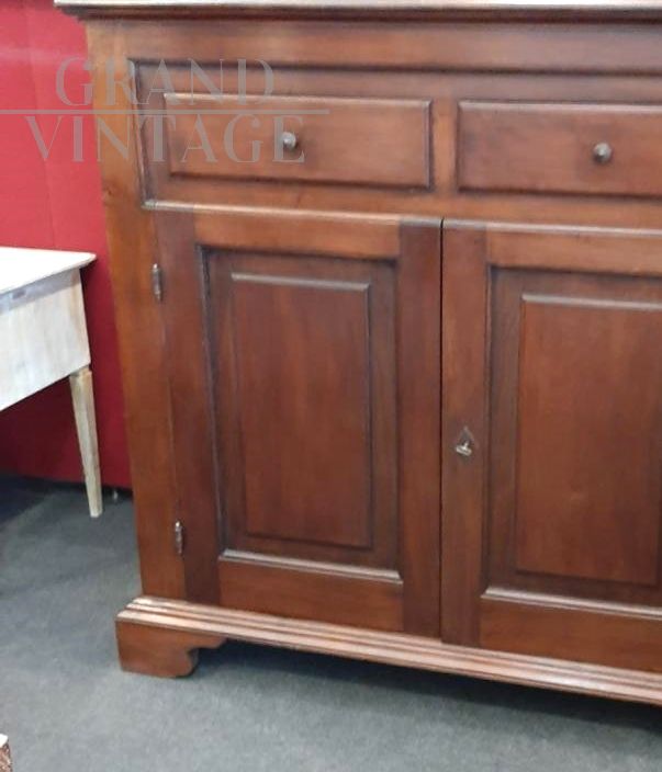 Piccola credenza antica lombarda in noce con due ante e due cassetti.