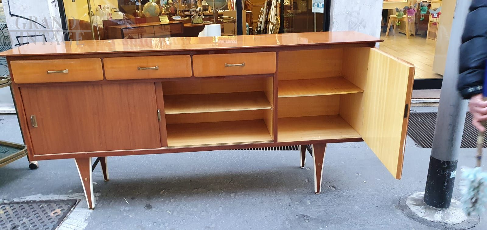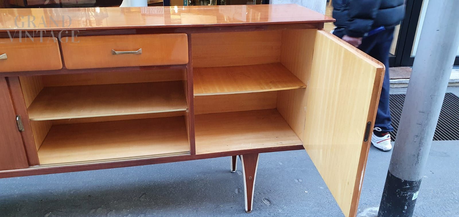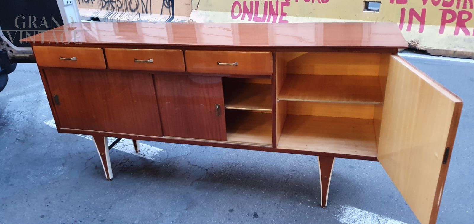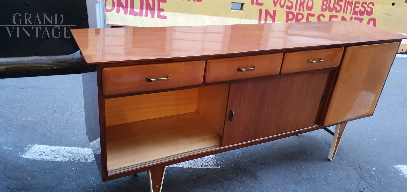 Bellissima credenza madia sideboard modernariato italiano, anni '50 / '60, in legno di teak e palissandro, in ottime condizioni.