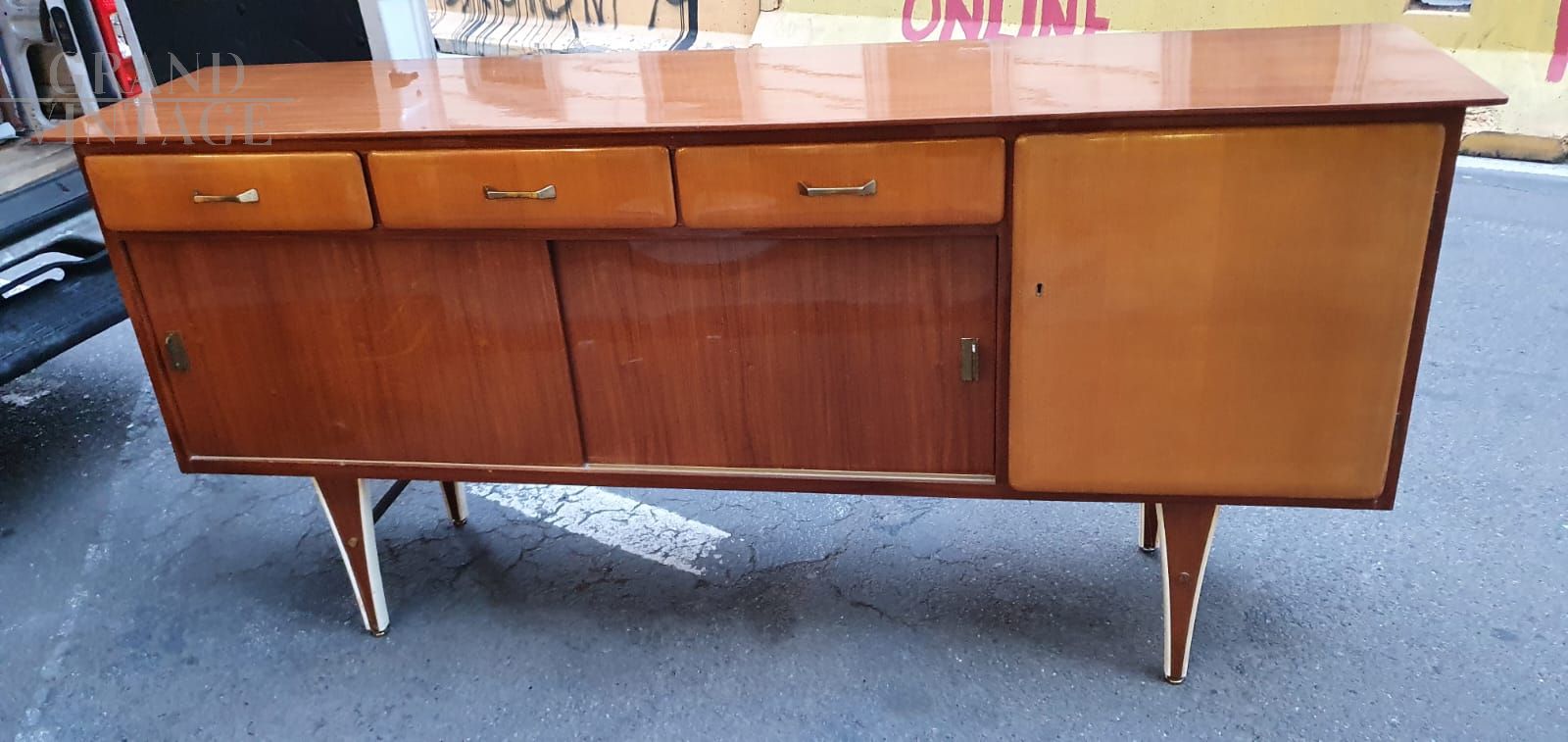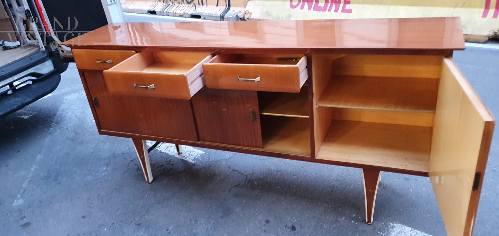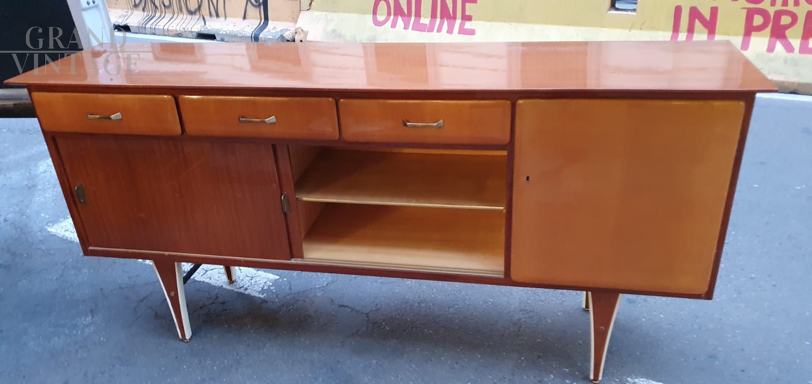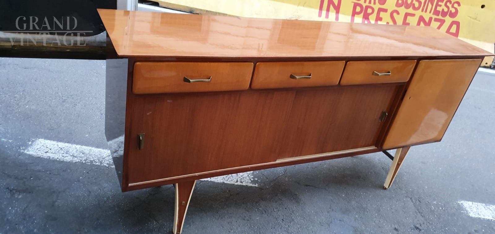 Bellissima credenza madia sideboard modernariato italiano, anni '50 / '60, in legno di teak e palissandro, in ottime condizioni.