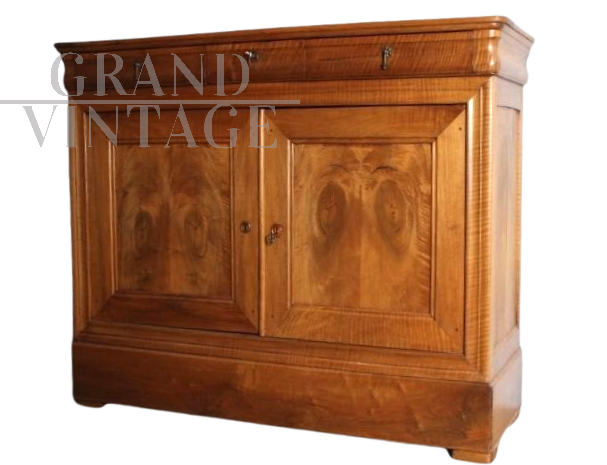 Bellissima credenza servante antica cappuccina del periodo Luigi Filippo, Italia 1860, realizzata in un raro legno massello di noce biondo. La credenza è detta cappuccina per via della svasatura dei cassetti mossi sotto il piano. Il mobile ha tre cassetti nella parte superiore, due ante nella parte centrale con ripiano divisorio interno, e nella parte inferiore presenta un grande cassetto segreto. Ferramenta, schiena e fondi dei cassetti originali coevi!! Appena Restaurata.