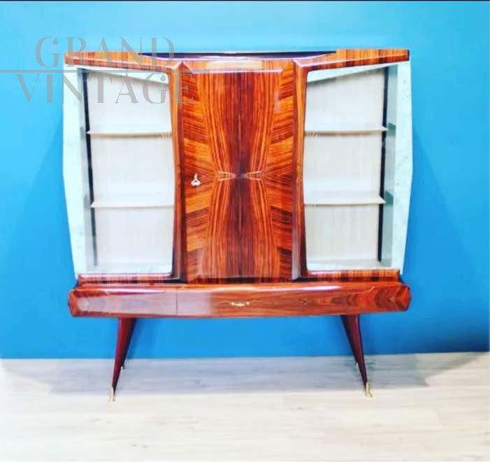Bellissima credenza vetrina design di Vittorio Dassi per Cantù, originale anni '50, in palissandro con cassetti ed ante a vetri.