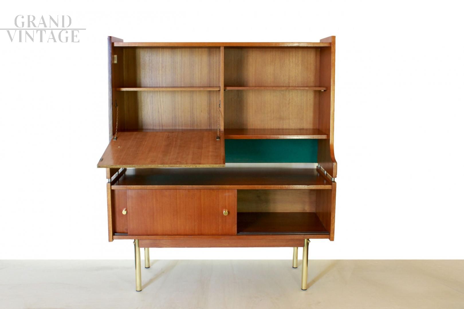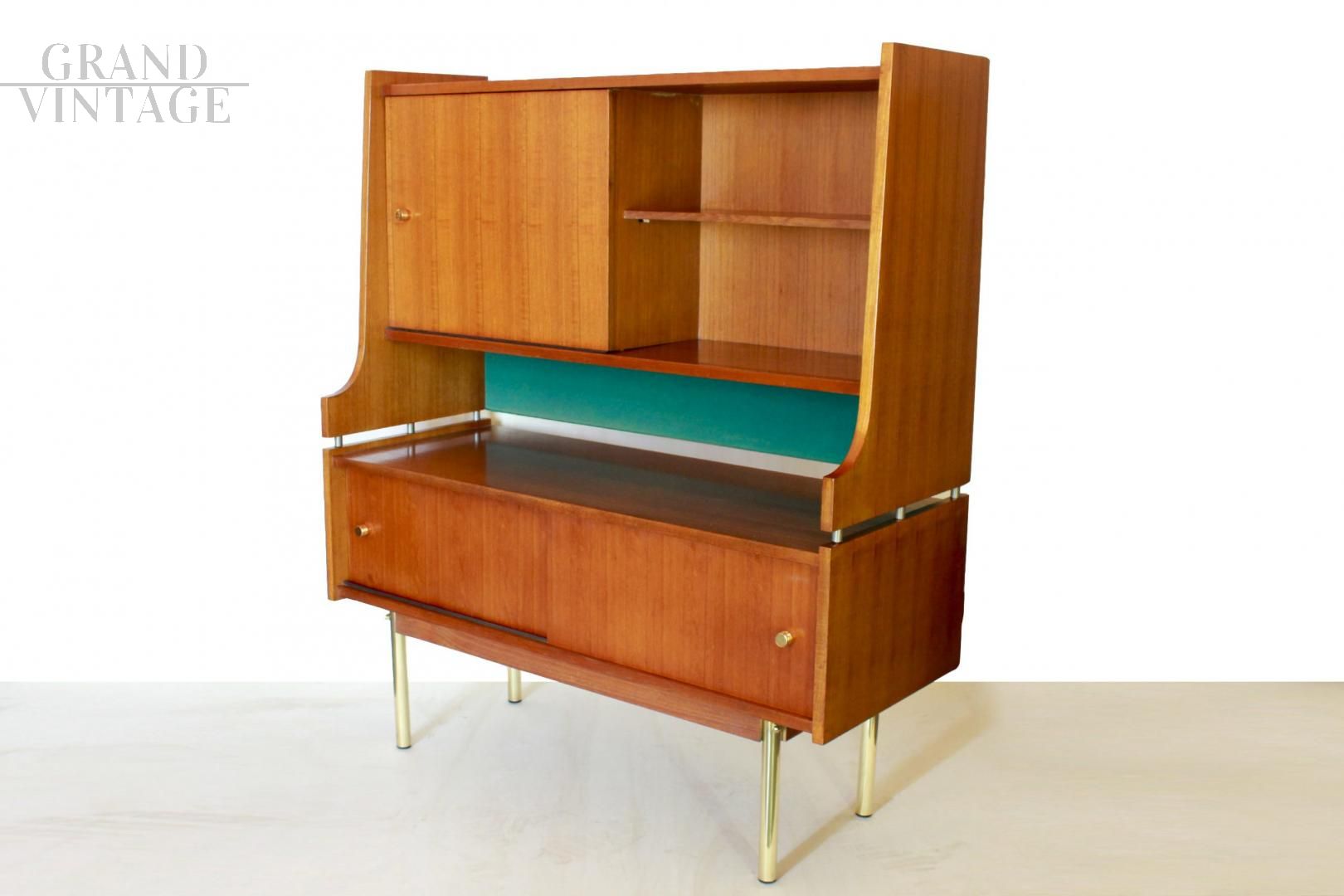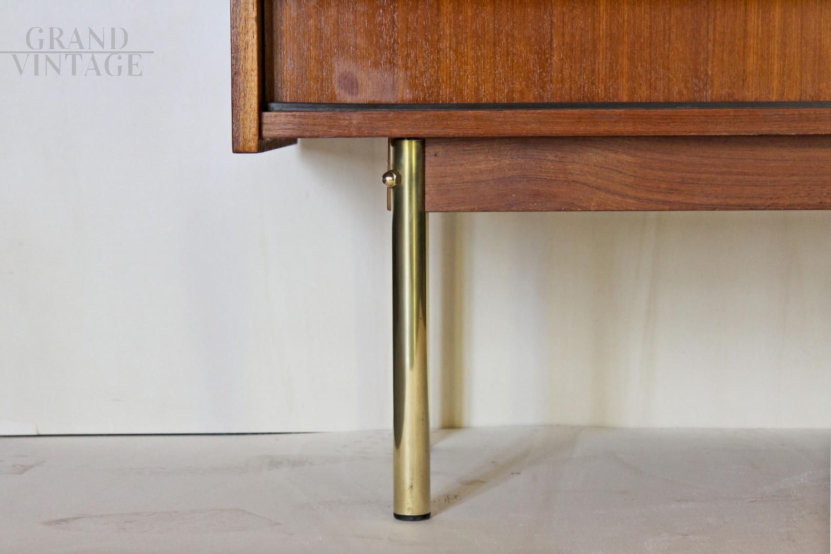 Credenza scandinava degli anni '50 in massello di teak e struttura in ottone. Struttura in legno pulita e lucidata, più piccoli interventi di restauro. In condizioni eccellenti con solo piccoli segni del tempo. Spedizione assicurata per Italia ed estero. Rimborso totale prezzo acquisto in caso di danni o non consegna.