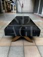 Materiali: Teak massello, rinomato per la sua resistenza e l'estetica calda; pelle di vacchetta nera, che offre una texture lussuosa e uno stile audace.