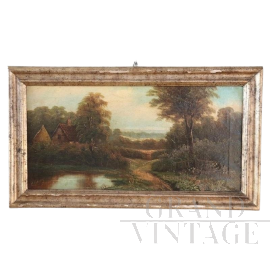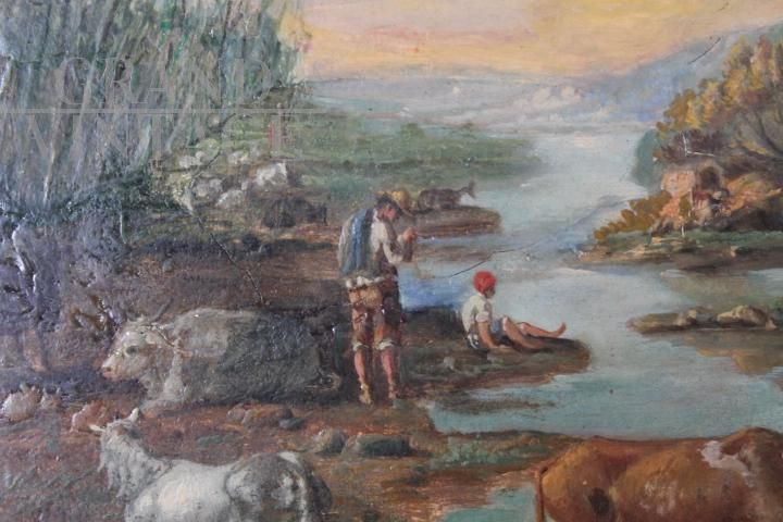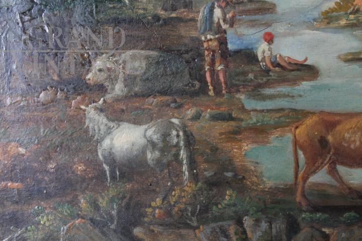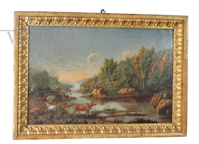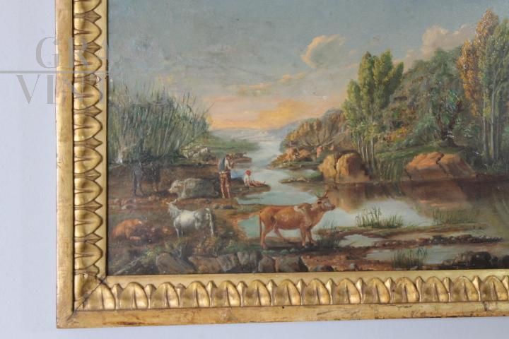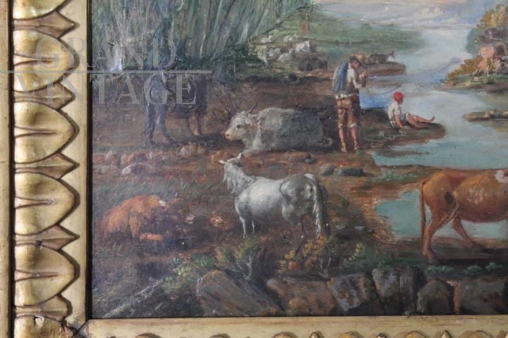 Dipinto con scena bucolica, olio su tavola di fine '700 in cornice antica