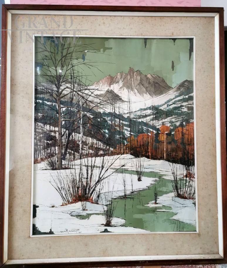 Dipinto di Renzo Ravazzotti, Neve a Bardonecchia, olio su tela, 1965