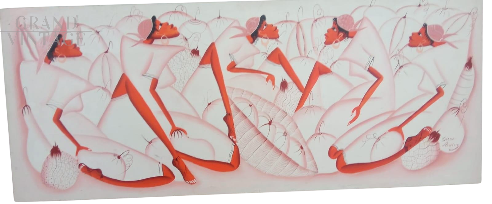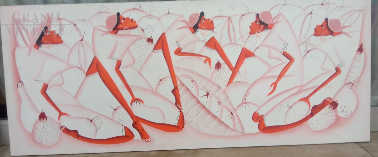 Dipinto etnico con donne firmato Achille Sicot