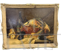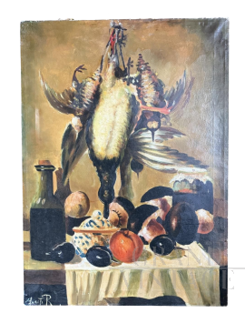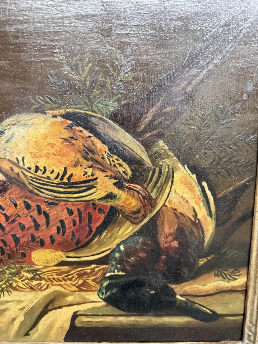 Dipinto natura morta con cacciagione, olio su tavola anni '40