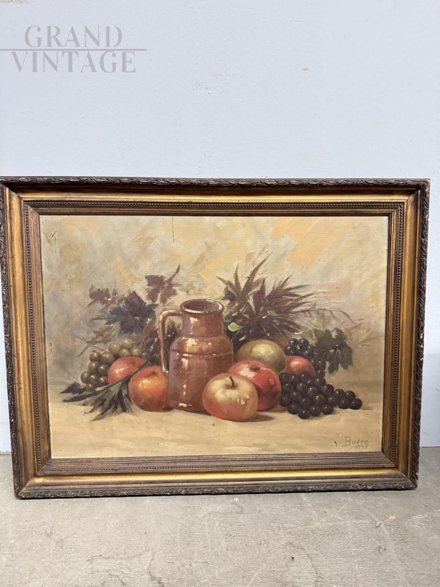 Dipinto natura morta con frutta, olio su tela 1925