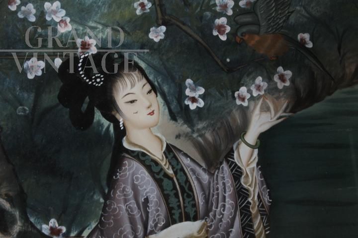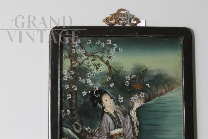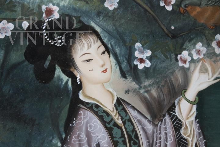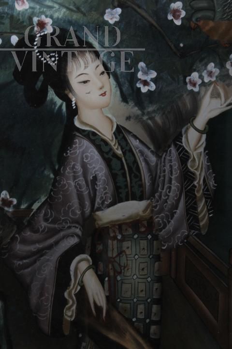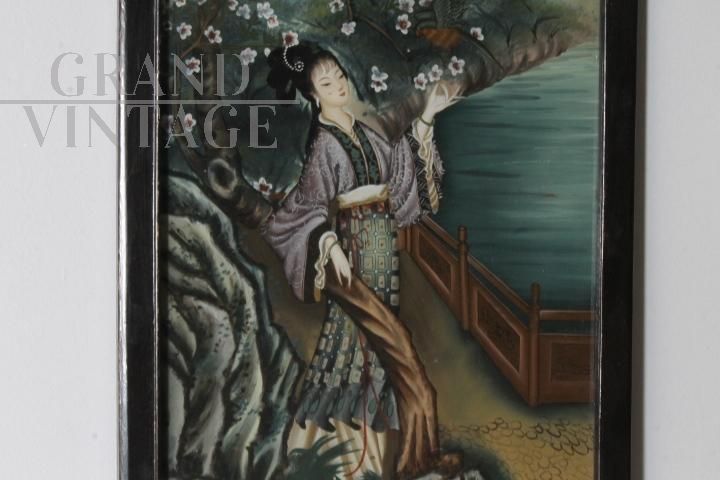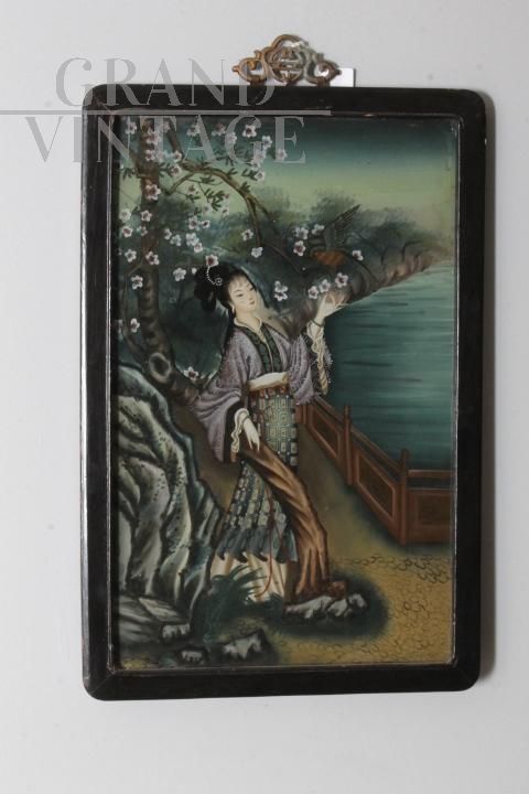 Dipinto su vetro con Geisha Giapponese dei primi del '900