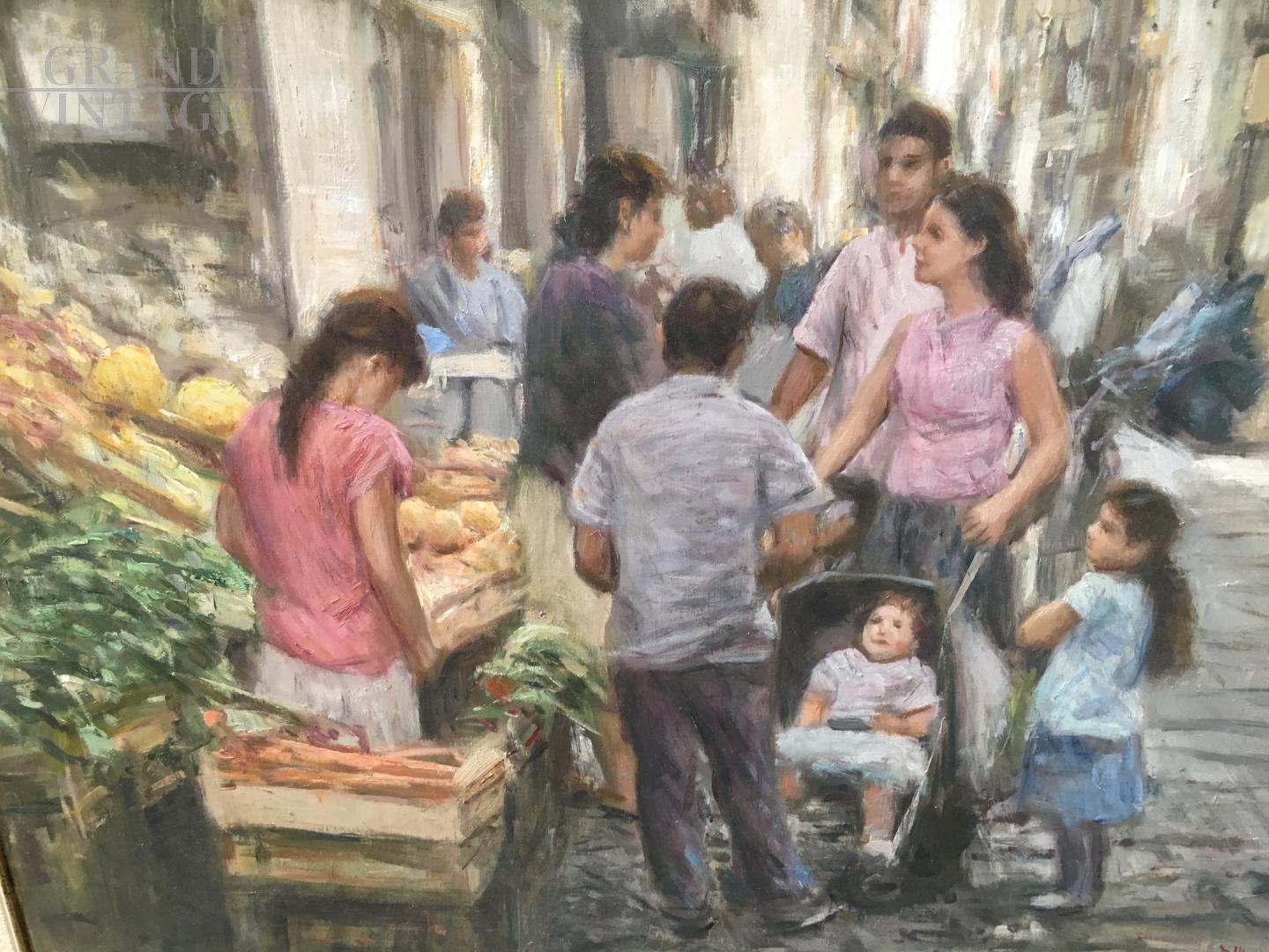 Bel dipinto con firma del maestro Tonino Manna (Napoli), artista famoso per le sue scene di vita comune.