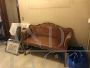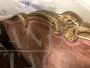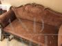 Divano di piccole dimensioni in legno finemente intagliato, rivestito in velluto rosa antico.