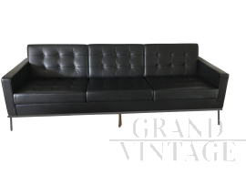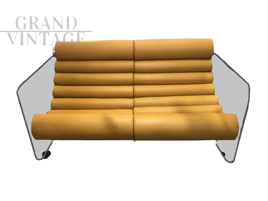 Divano Ialino Hyaline di Fabio Lenci, edizione Comfort, in cuoio marrone Terra di Siena, con le caratteristiche lastre portanti in vetro ai lati e con dettagli in acciaio inox, realizzato nel 1969, in perfetto stato.