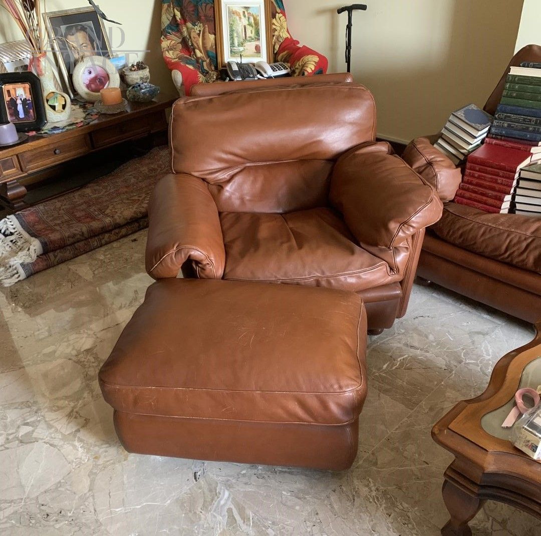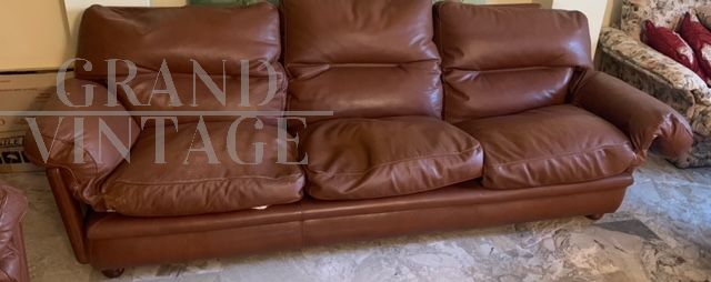 Divano Poppy Frau + 2 poltrone e pouf in pelle color cognac