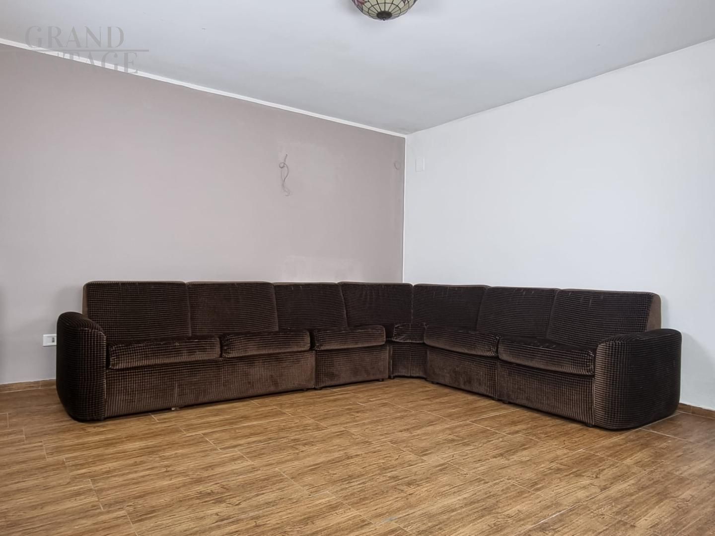 Divano angolare vintage in velluto marrone, anni '70