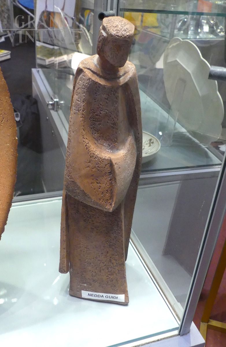 Figura Giottesca n.4, scultura di Nedda Guidi in terracotta a parziali lumeggiature argento, realizzata nel 1960.