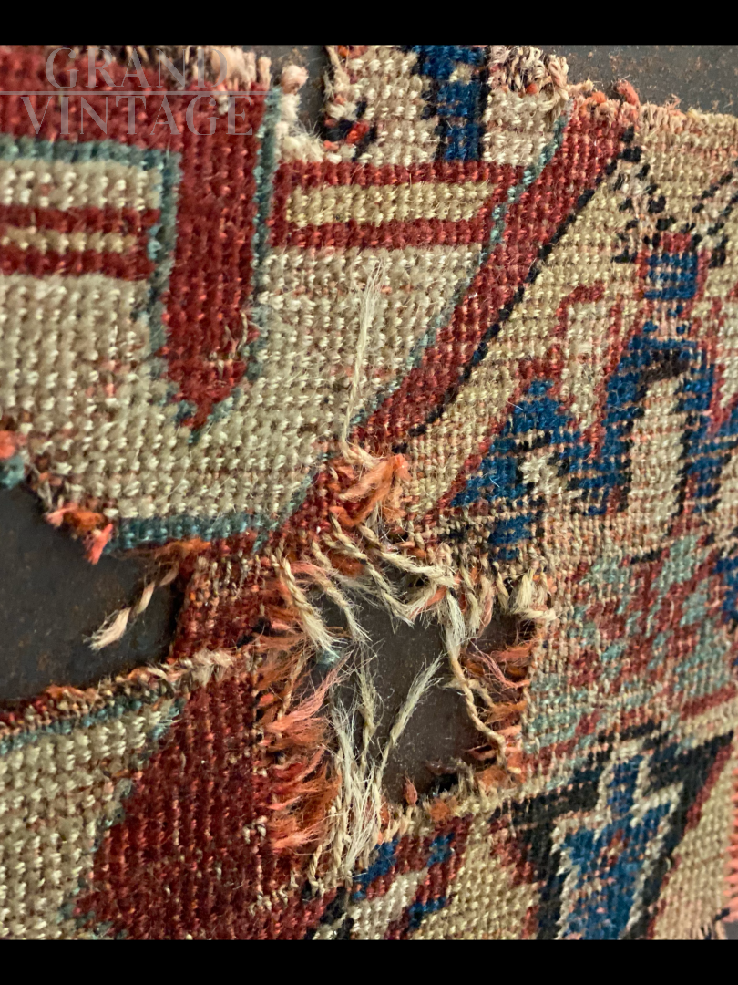 Frammento di antico tappeto orientale trasformato in soprammobile.