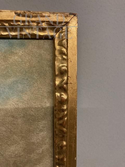 Grande dipinto antico Liberty di puro gusto Art Nouveau, realizzato negli anni '30, raffigurante Contadina con Putti in scena campestre. Realizzato e dipinto a pastello su materiale rigido Linoleum, di bellissima fattura e qualità, nei minimi dettagli, in cornice dorata coeva. Non necessita di alcun restauro.