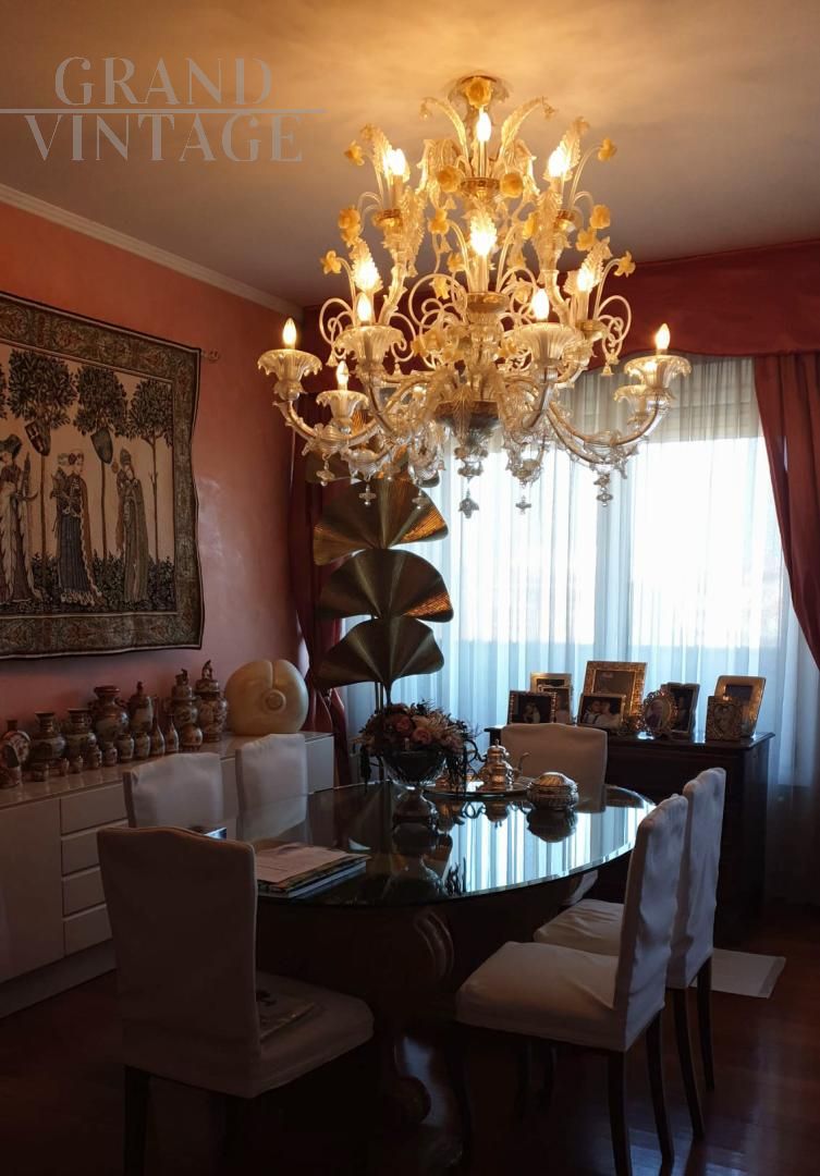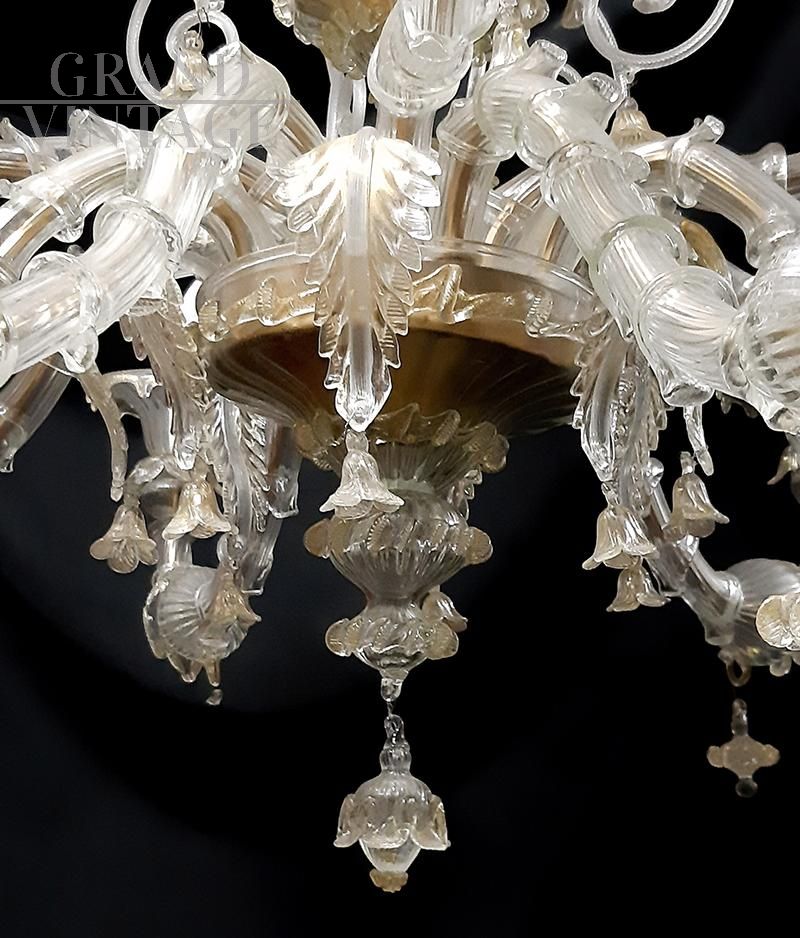 Grande e sontuoso lampadario in vetro di Murano trasparente e oro I-0009