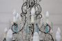 Bellissimo lampadario di cristallo di grandi dimensioni dei primi decenni del XX secolo, dotato di 18 luci disposte su due piani, con struttura in bronzo, completamente ricoperto di gocce di cristallo trasparente con alcuni cristalli decorativi di colore azzurro. Il cristallo emana la tipica luminosità, in questo lampadario di raffinata eleganza e ricchezza. Usato ma in perfette condizioni, impianto elettrico funzionante. Ottimo prezzo trattabile.